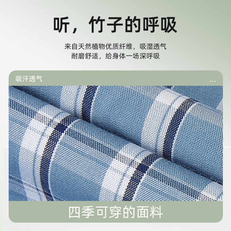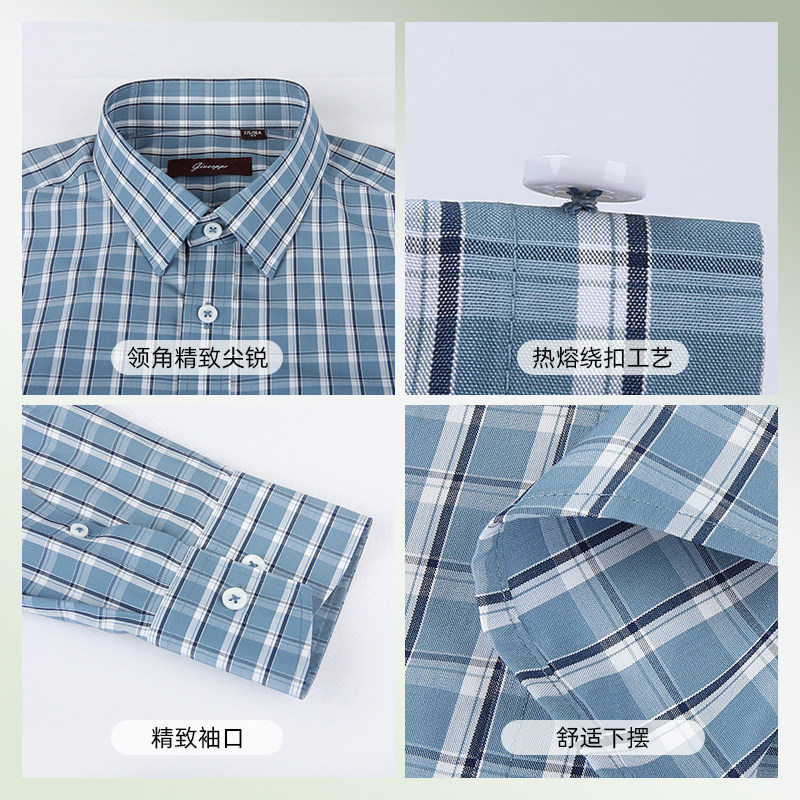 【竹纤维】乔治白春秋男士长袖衬衫蓝格子尖领休闲衬衣修身上衣