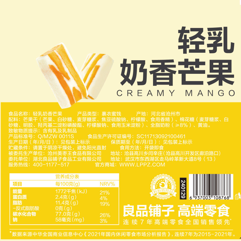良品铺子轻乳奶香芒果网红食品芒果干休闲解馋蜜饯果干小零食