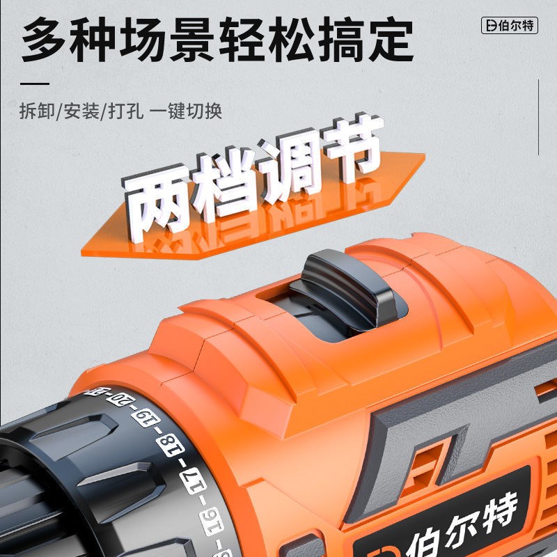 热销电动钻充电双速家用手枪电钻螺丝刀钻冲击锂电多功能手伯尔特