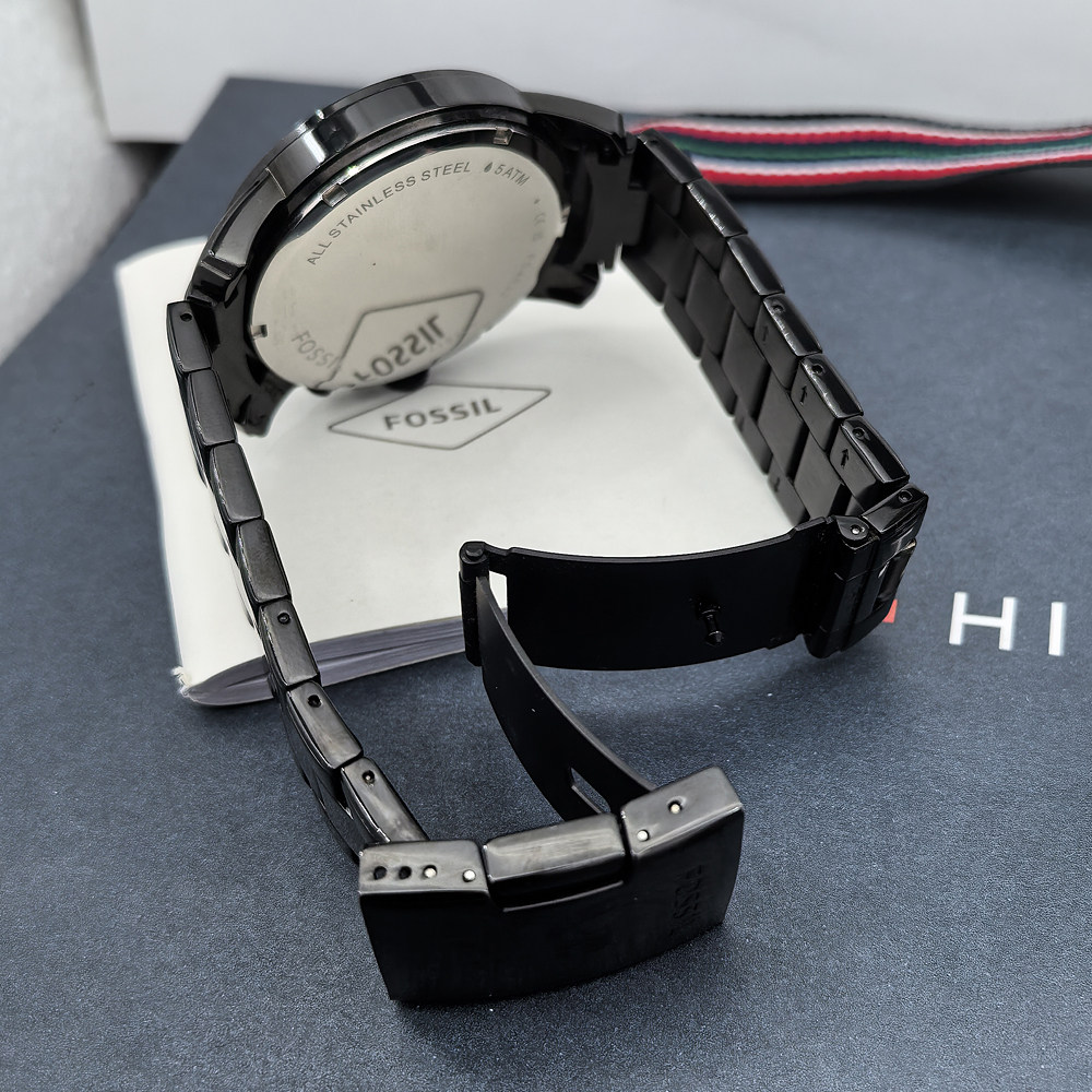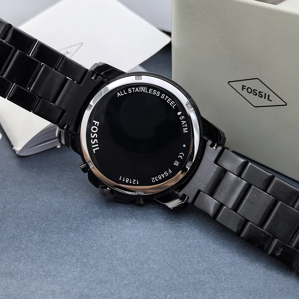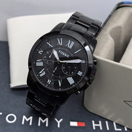 FOSSIL手表不锈钢酷黑色商务休闲计时石英表防水男士手表FS4832