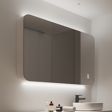 智能圆角浴室镜柜单独卫生间挂墙式新款镜柜带灯壁挂镜箱定制