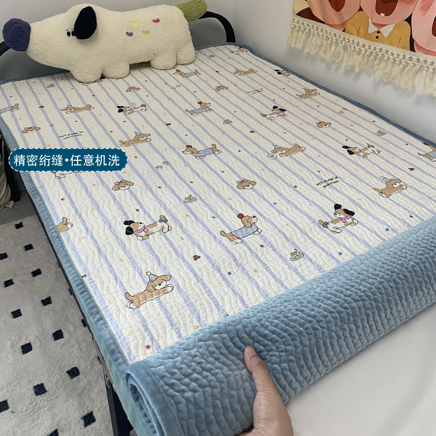 学生宿舍床盖一面绒一面棉纯棉毯加厚床单绗缝全棉加绒夹棉单人