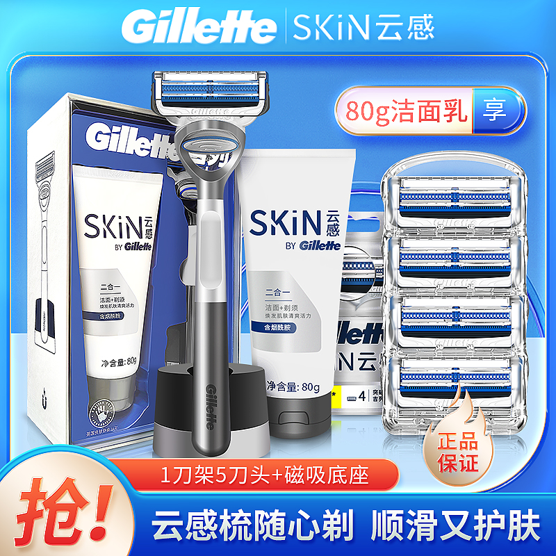 吉列云感小云刀剃须刀手动刮胡刀男水洗刀片式刀头通用锋速5刀片