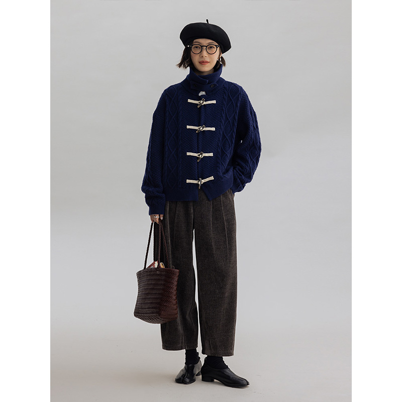 Dotdrobe多着 保暖雪尼尔 坑条感褶裥九分气球裤女秋冬-灰色/咖色
