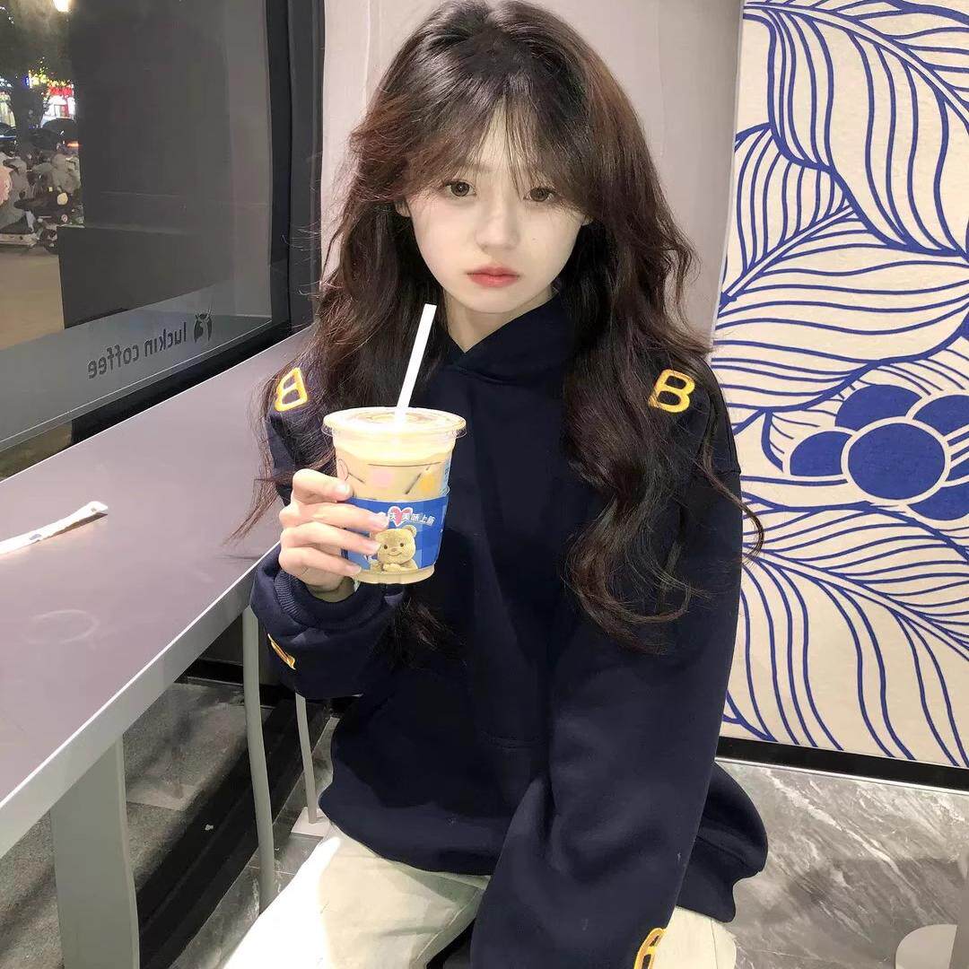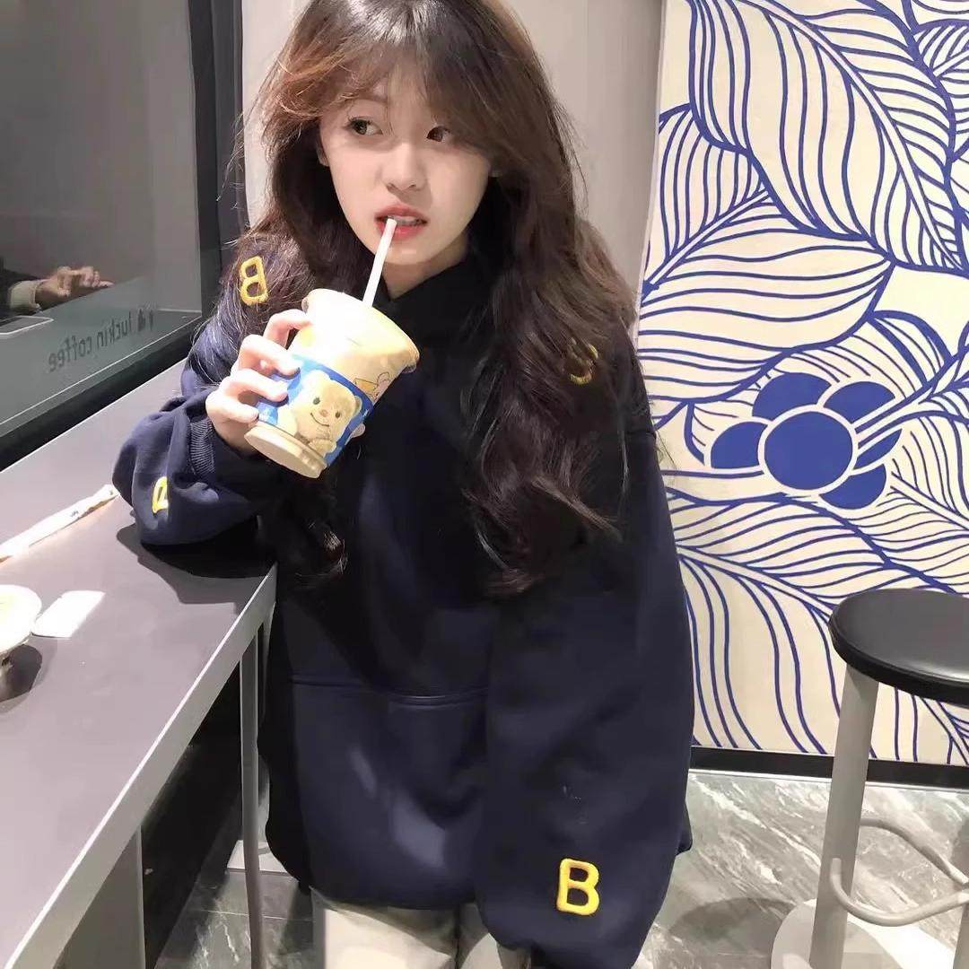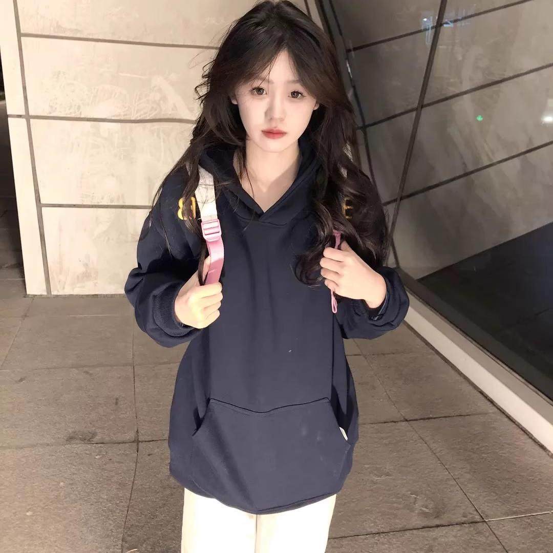 秋冬美式oversize贴布刺绣字母连帽卫衣女加绒加厚国潮牌情侣外套