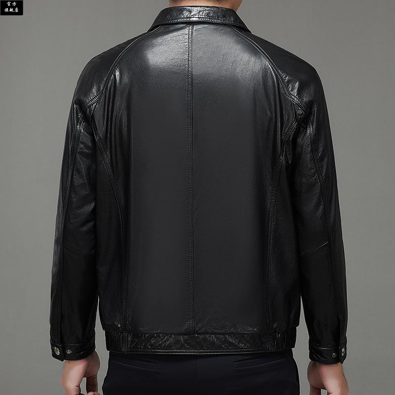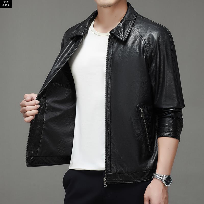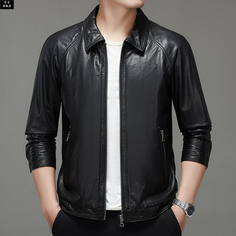 保罗官方2025新款真皮皮衣男翻领机车风黑色皮夹克外套头层牛皮修