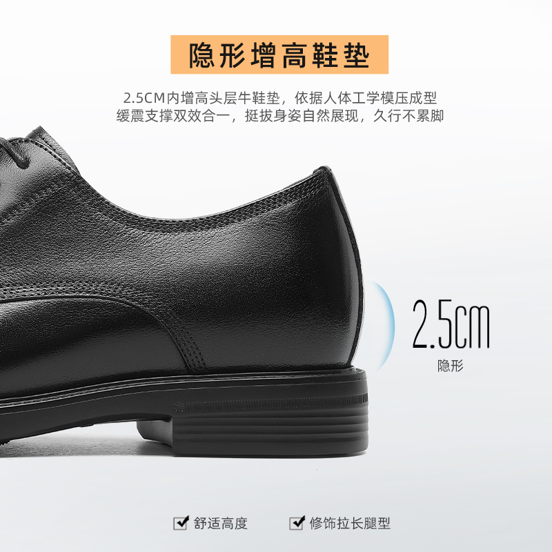 金利来男鞋秋季新款商务正装皮鞋男士增高新郎婚鞋防滑真皮德比鞋