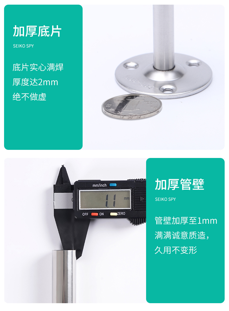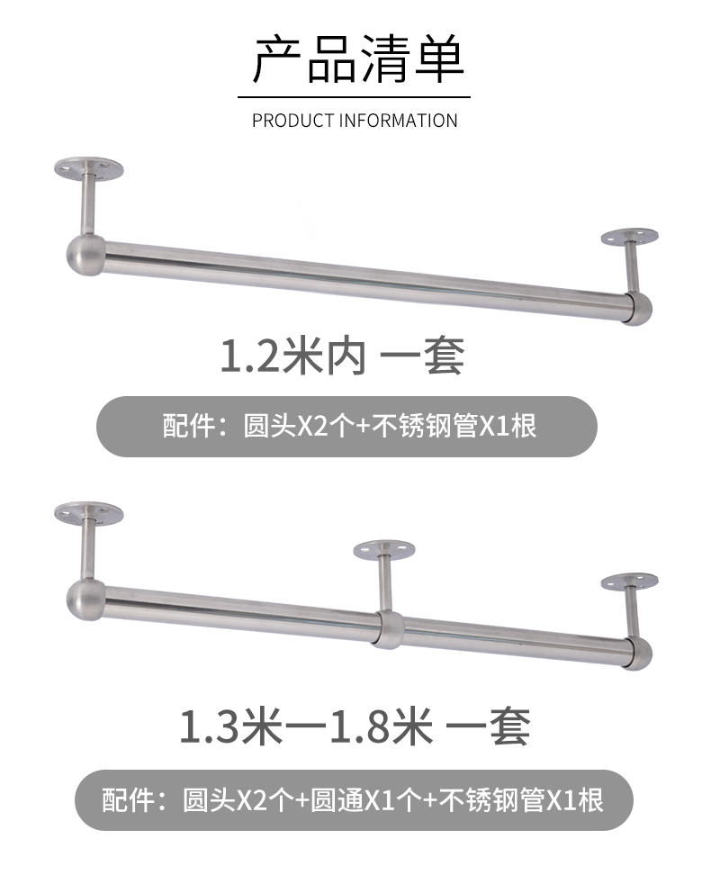 25mm不锈钢管子吊装挂衣杆衣柜里的顶上衣架杆吊柜吊下挂毛巾顶装