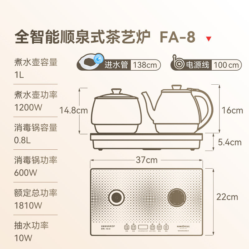 金灶FA-8手柄自动上水电热水壶保温一体玻璃烧水壶泡茶专用电水壶