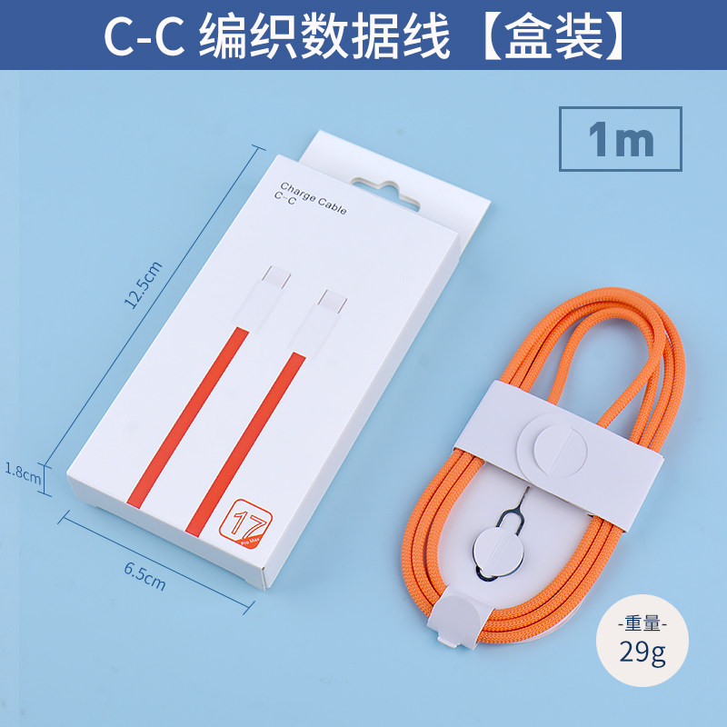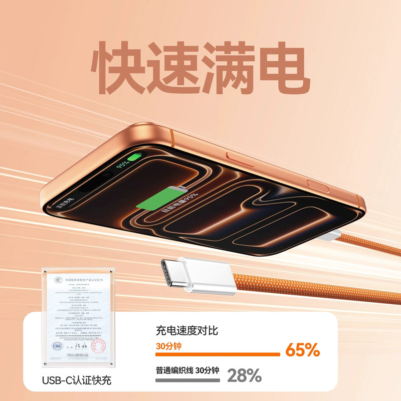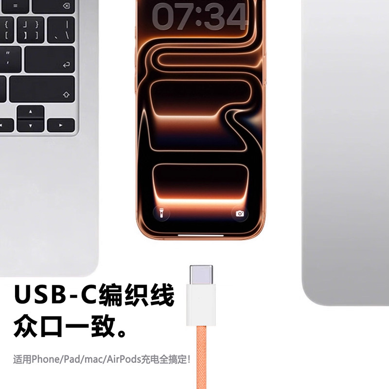 适用苹果17数据线iPhone16充电线双typec线15promax手机快充PD45W编织30W车载air橙色60W带取卡针
