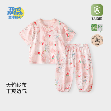 婴儿短袖套装夏季天竹棉纱布短袖长裤男女童宝宝轻薄透气休闲夏装