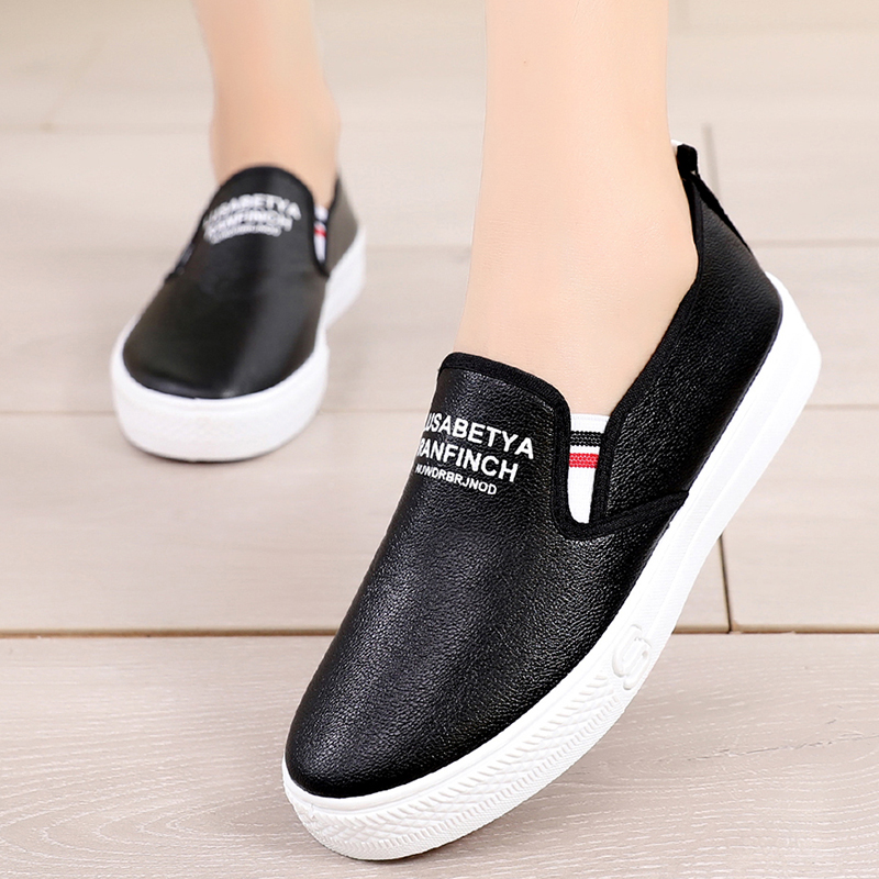 2019秋季新款pu皮面懒人鞋女一脚蹬韩版百搭学生板鞋老北京布鞋女