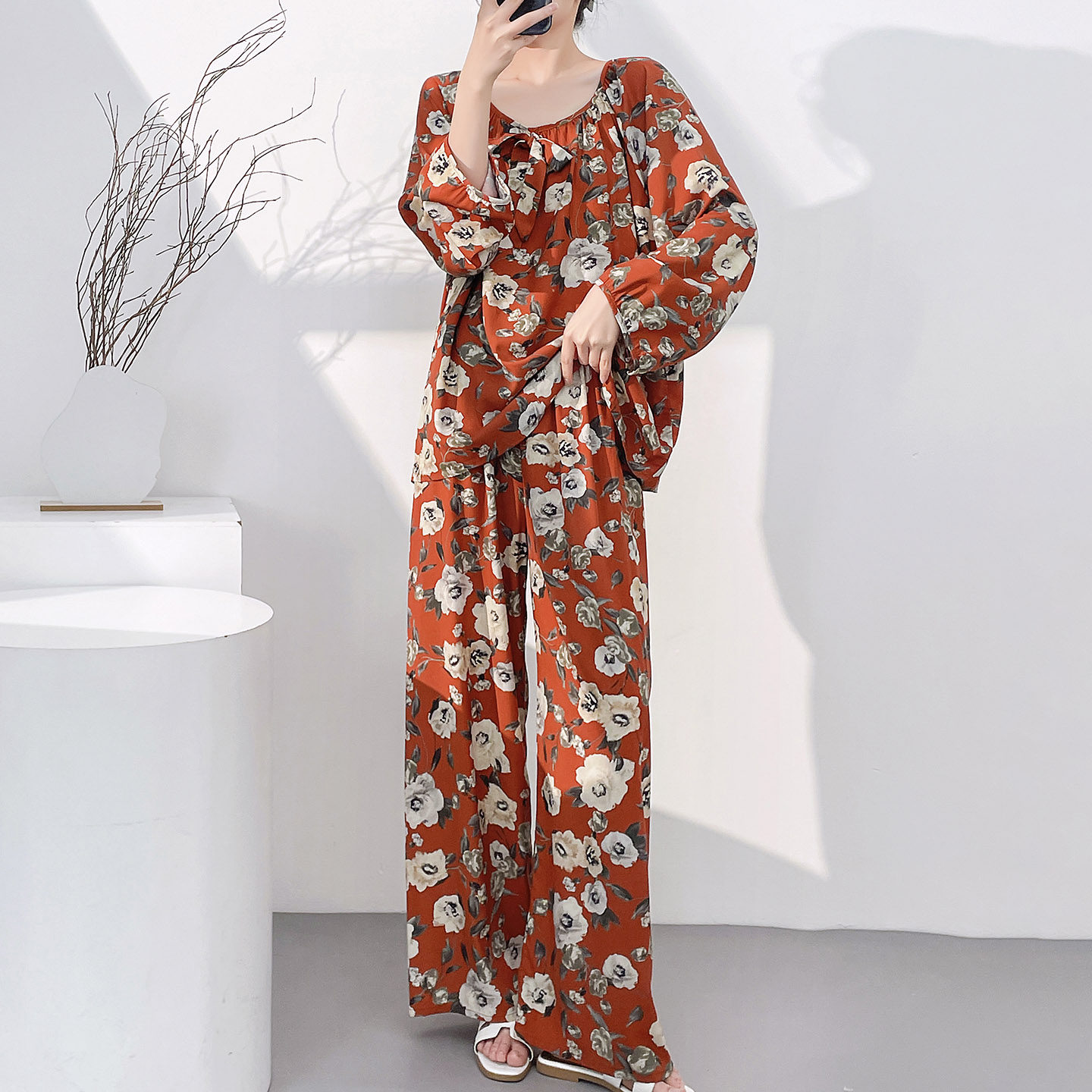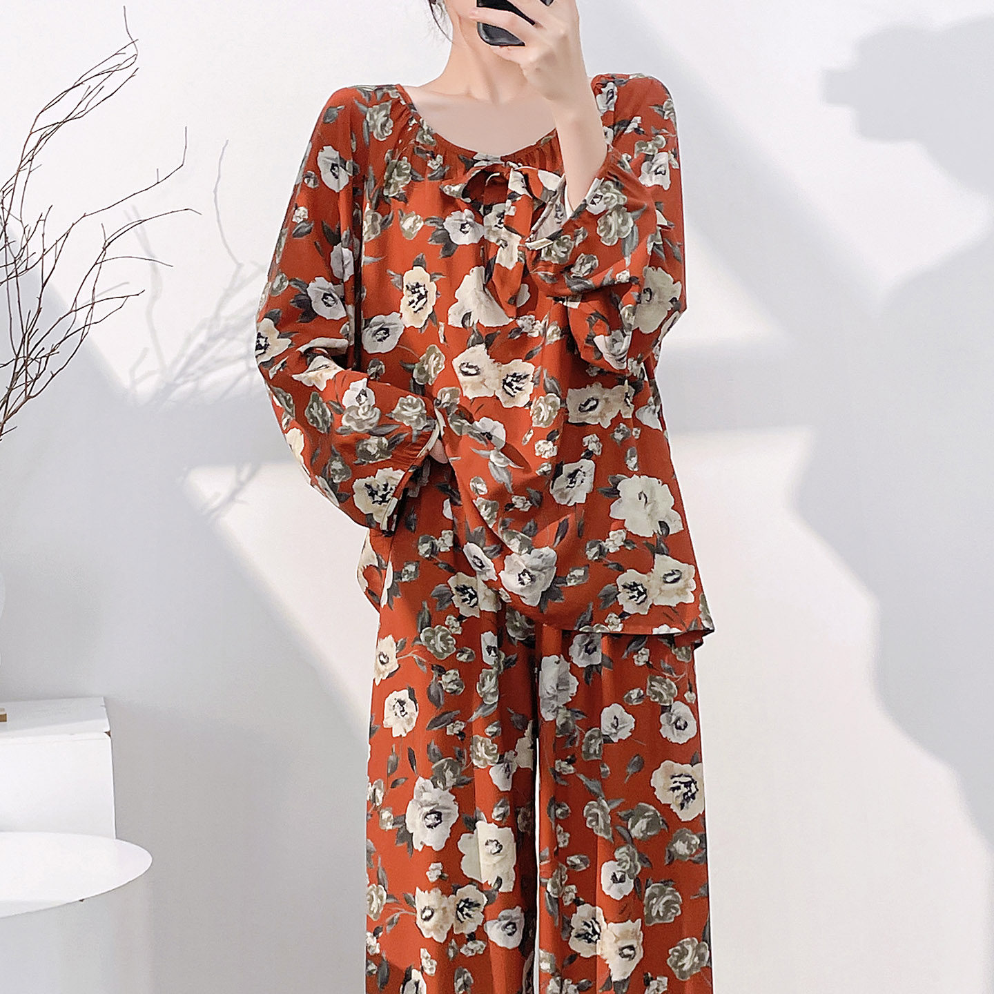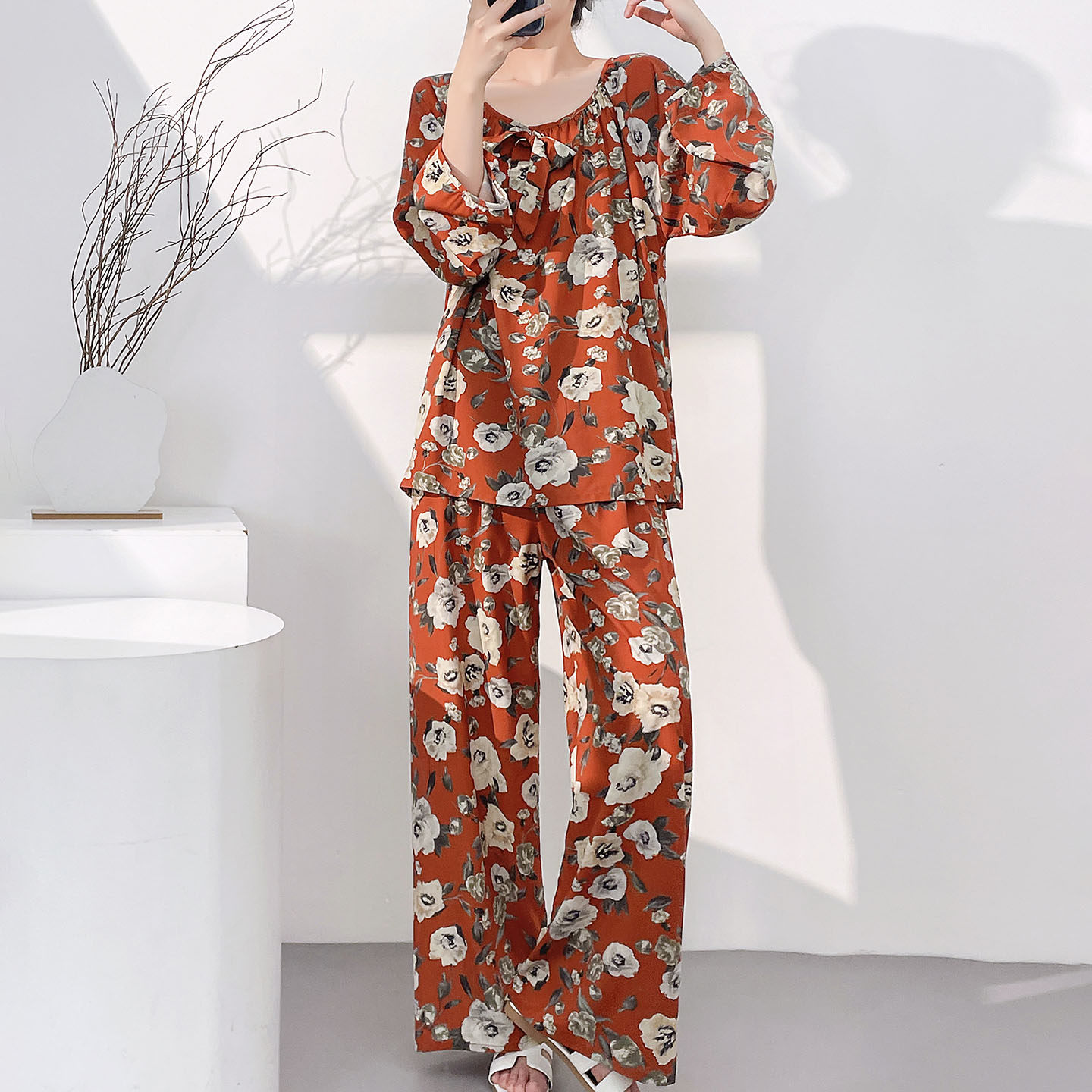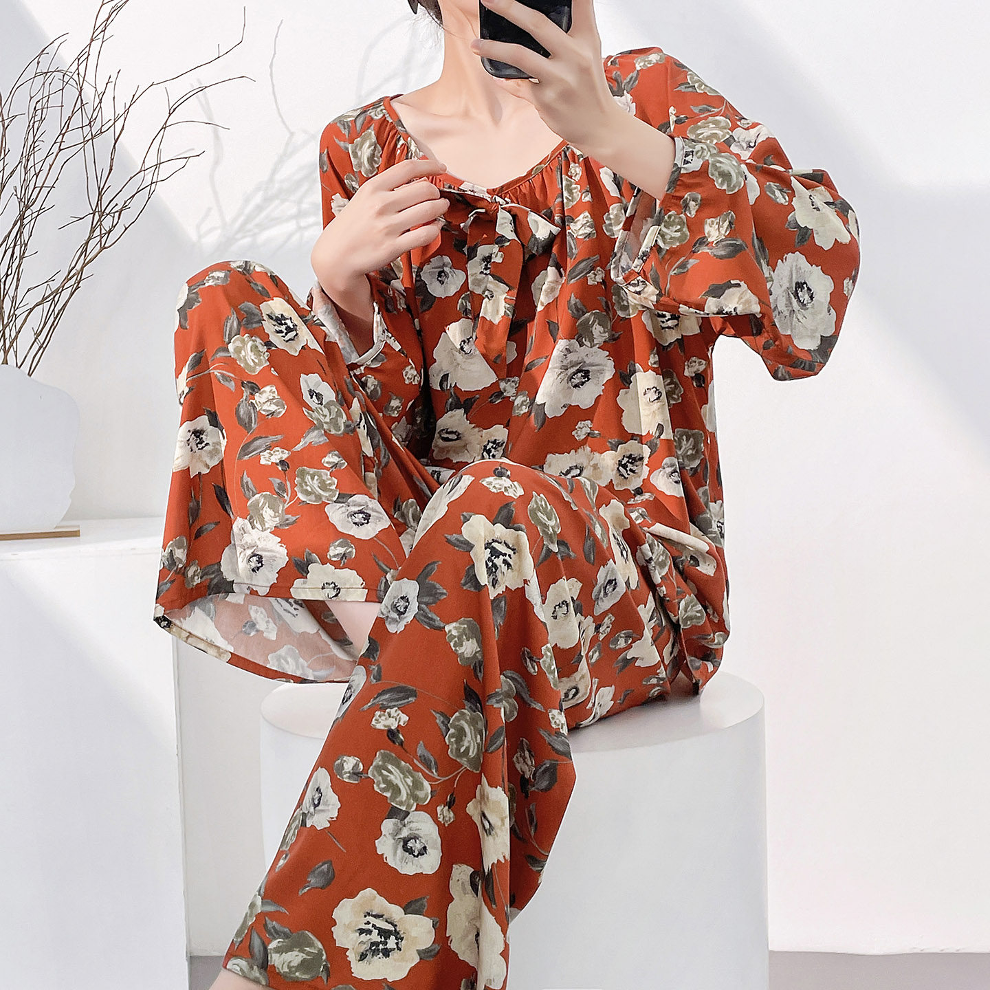 棉绸新中式女睡衣套装可外穿