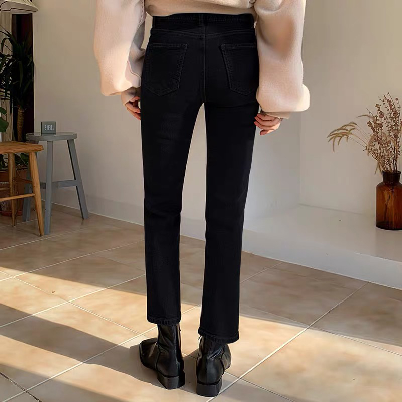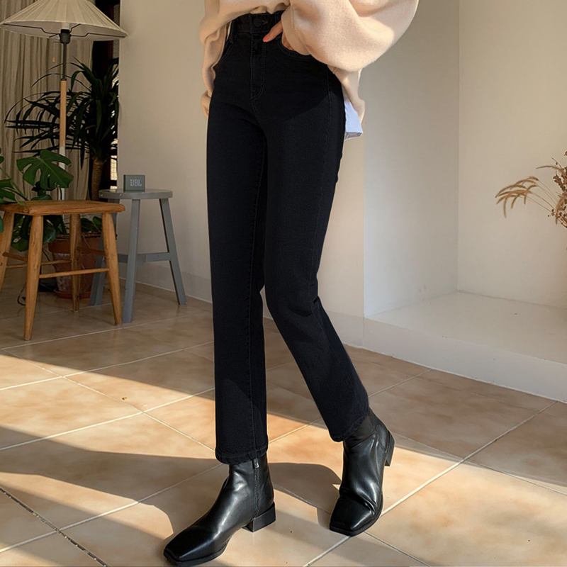 高腰黑色九分牛仔裤女显瘦直筒烟管裤小个子大码胖MM2025春秋裤子
