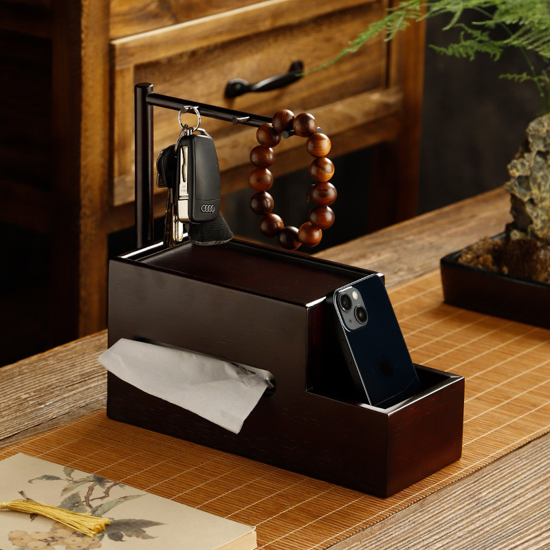 竹制提拿纸巾盒中式实木餐巾纸盒简约复古创意抽纸盒家用客厅收纳