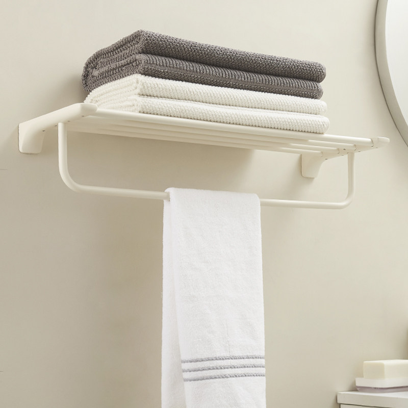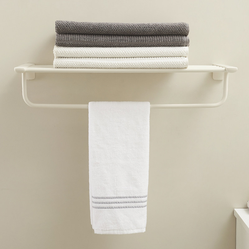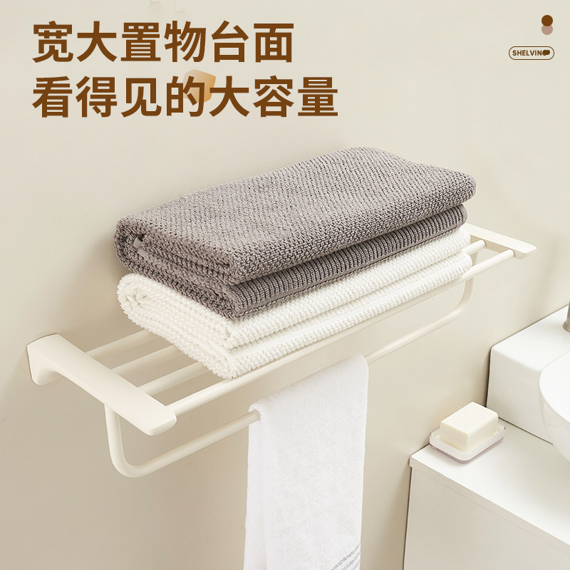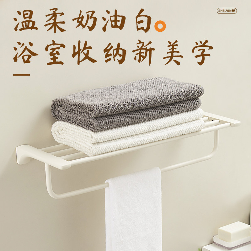瑞勤奶油白卫生间毛巾架免打孔不锈钢浴巾置物架卫浴五金挂件套装