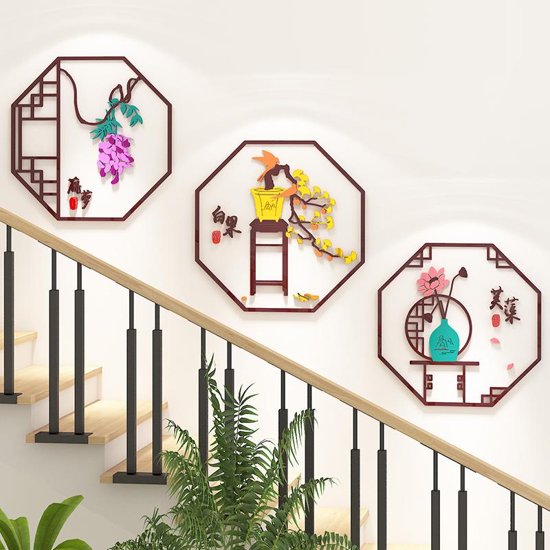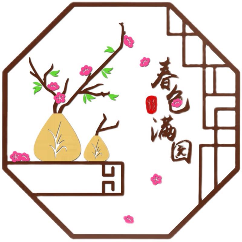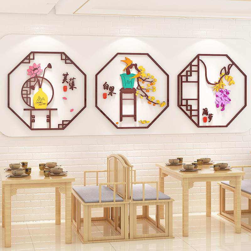 新中式书房茶室背景墙面装饰品客厅餐桌卧室布置3d立体自粘墙贴画