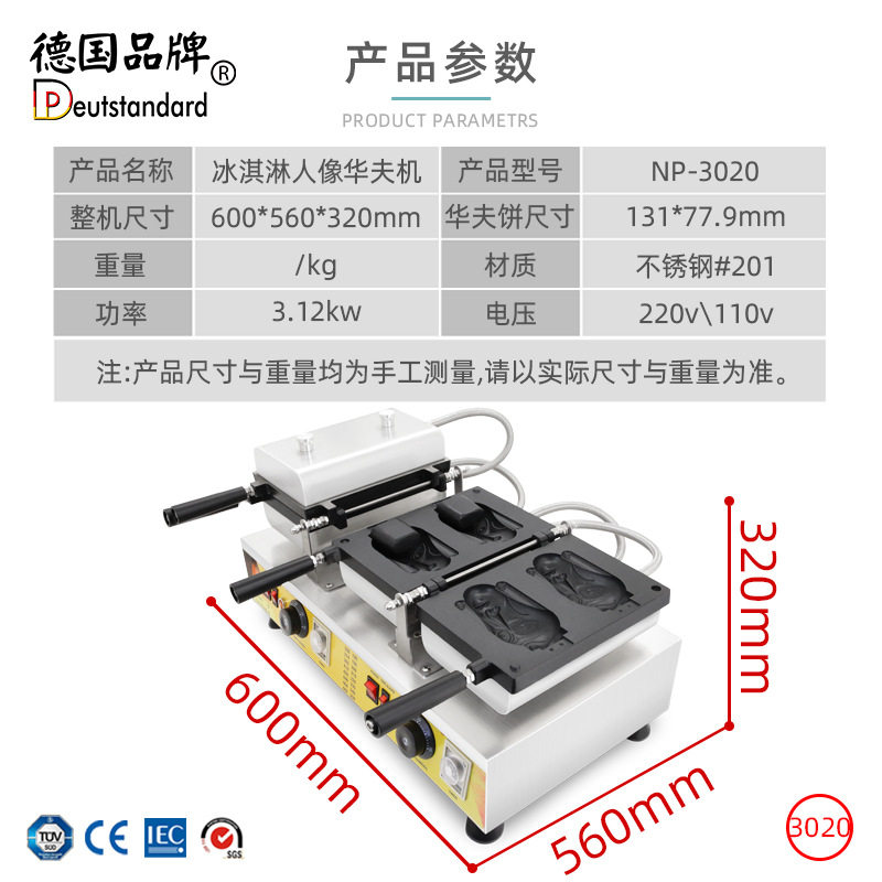 商用烤饼机 开口冰淇淋华夫饼机 双面加热可翻转电饼档双板华夫炉