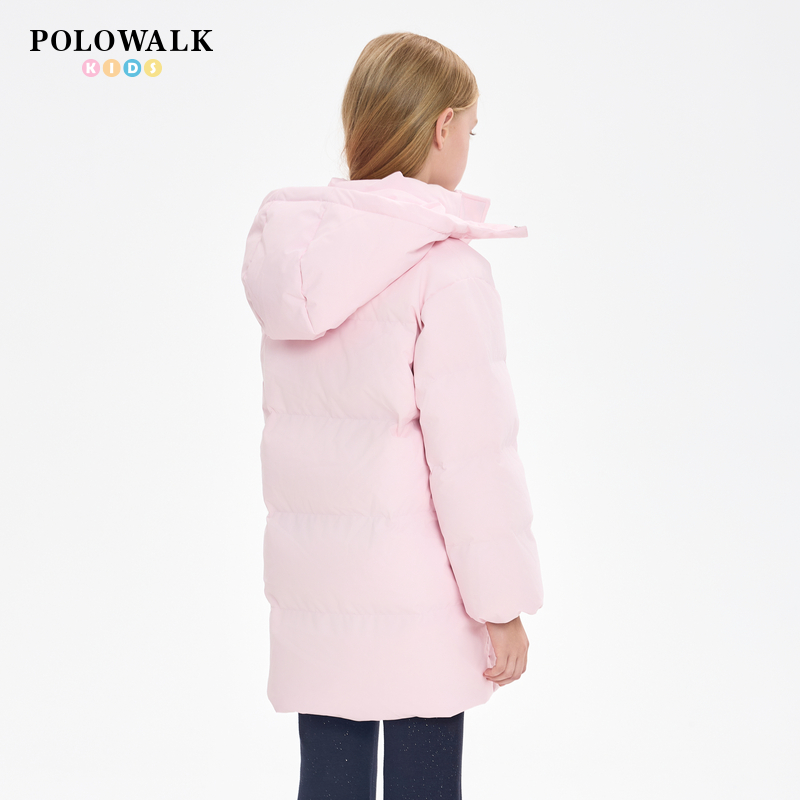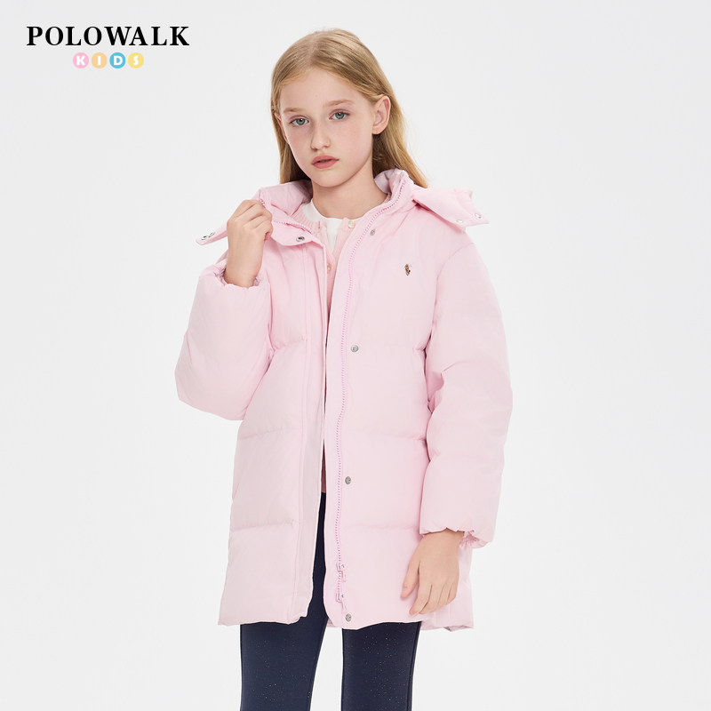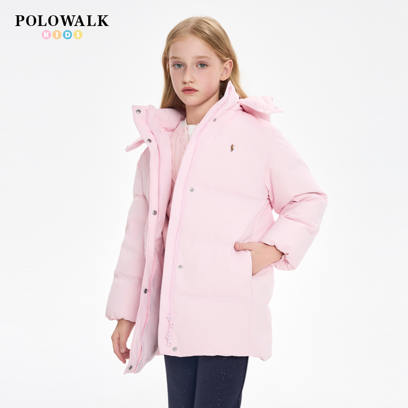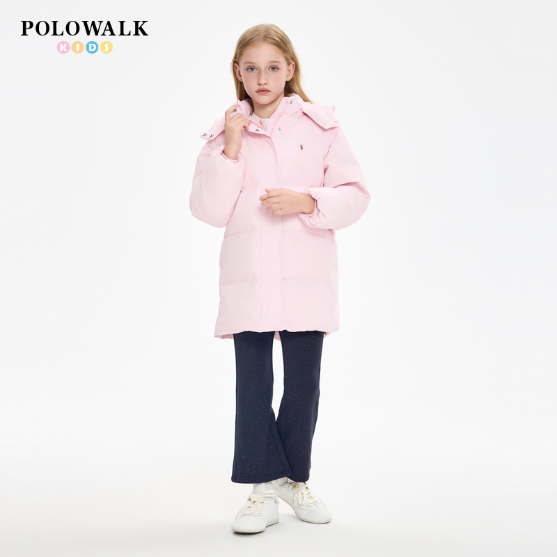 【90白鸭绒】POLOWALK童装女童羽绒服25冬可脱连帽中长款保暖上衣