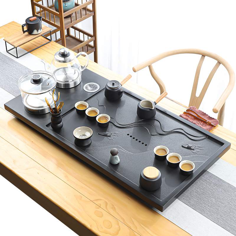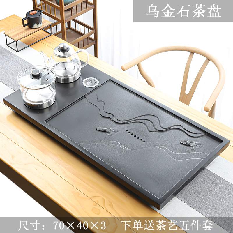 天然浮雕乌金石茶盘茶具套装全自动上水茶台烧水壶一体电磁炉家用