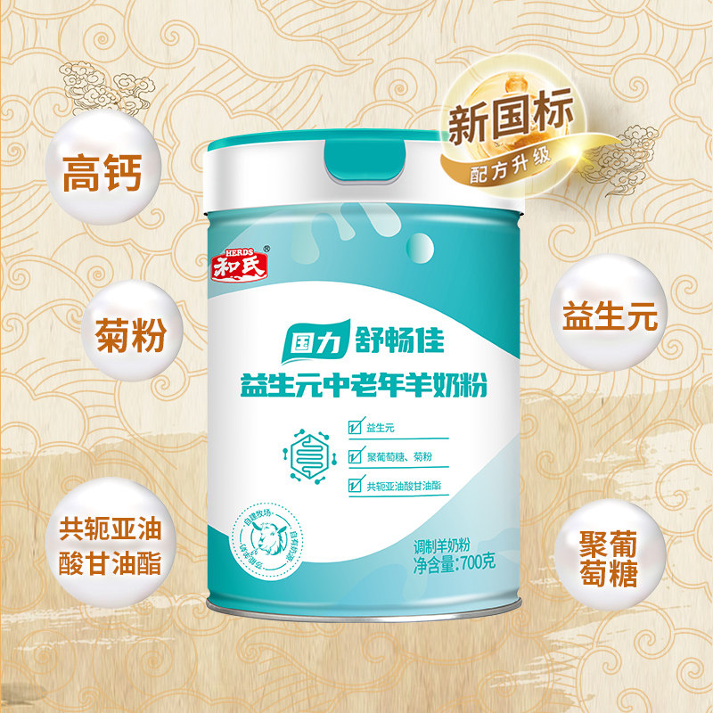 和氏国力舒畅佳益生元成人奶粉中老年高钙多维配方营养奶粉700g罐