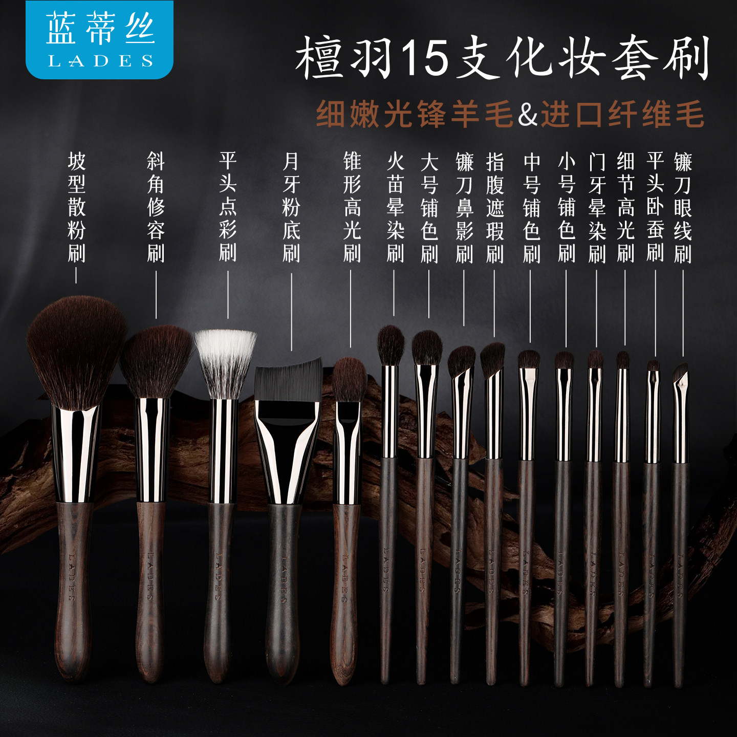 LADES/蓝蒂丝15支檀羽化妆刷套装礼盒动物毛眼影刷粉底修容刷