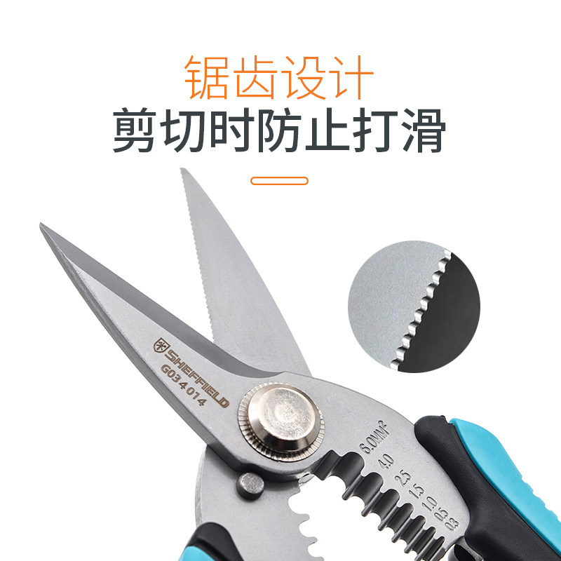 钢盾S036010 多功能不锈钢电工剪刀剥线剪线压线钳电工神器专用剪