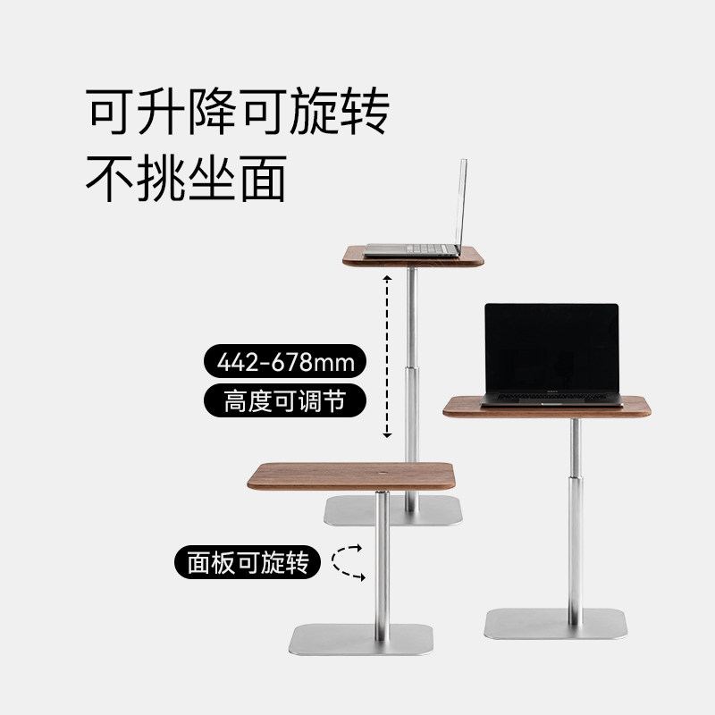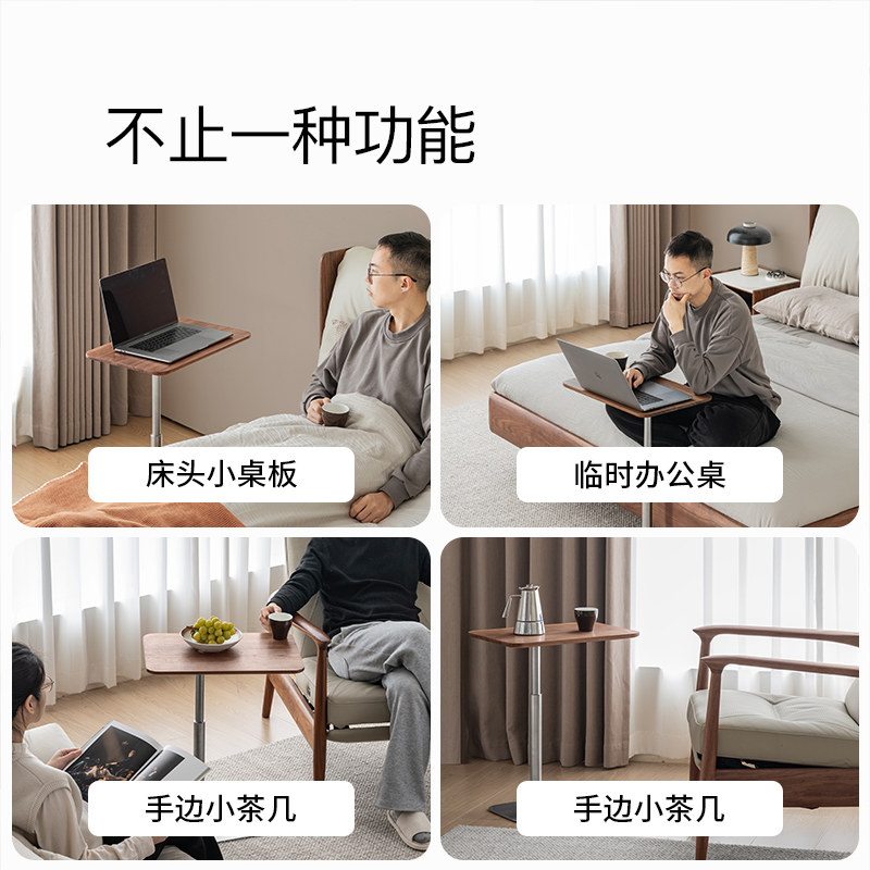 黑胡桃木升降边几实木移动茶几