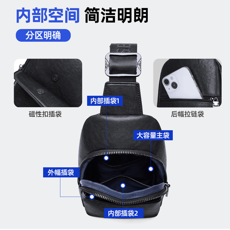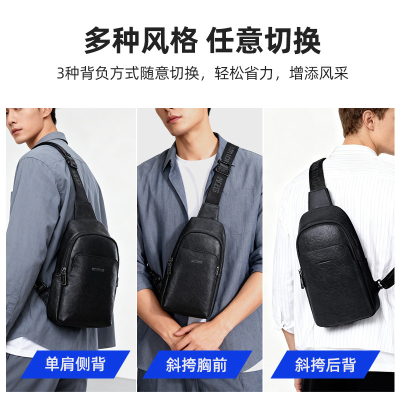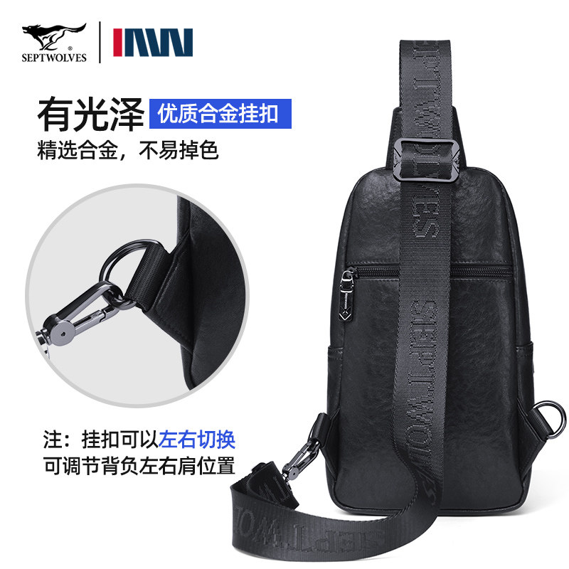 七匹狼胸包男士新款大容量纯牛皮单肩休闲胸前包男生斜挎包小背包