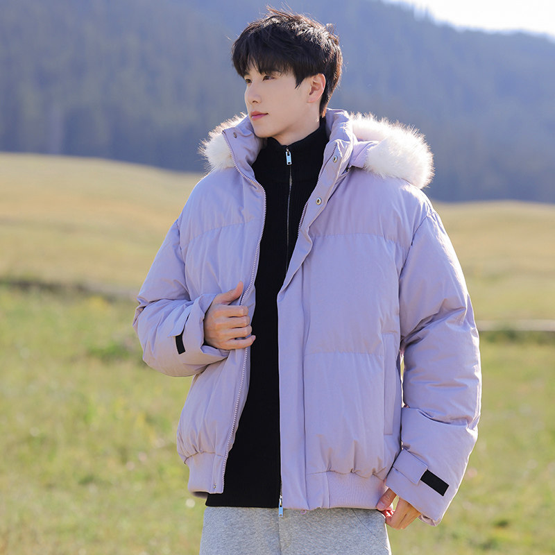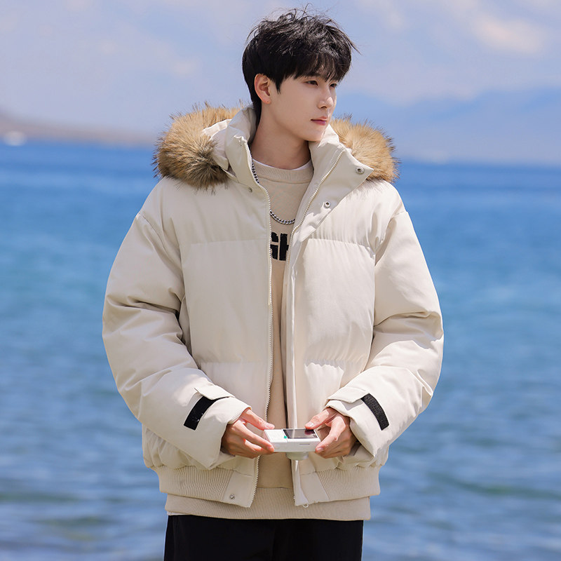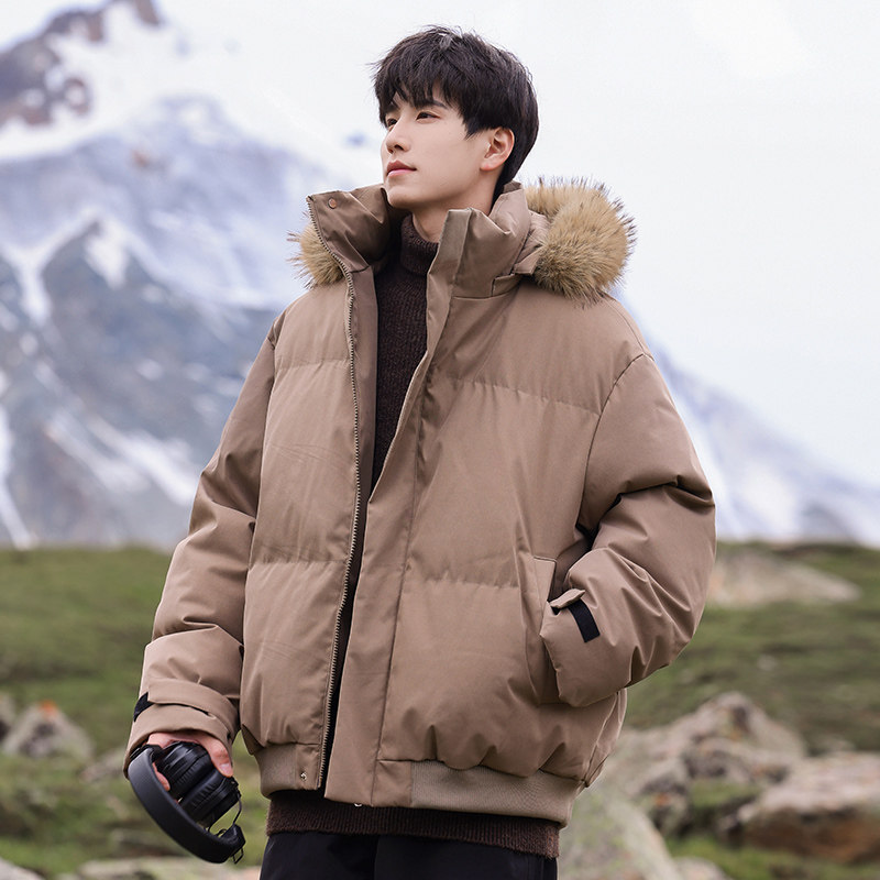 迈特优美式可拆卸毛领连帽短款棉服男女冬季宽松加厚派克棉衣外套