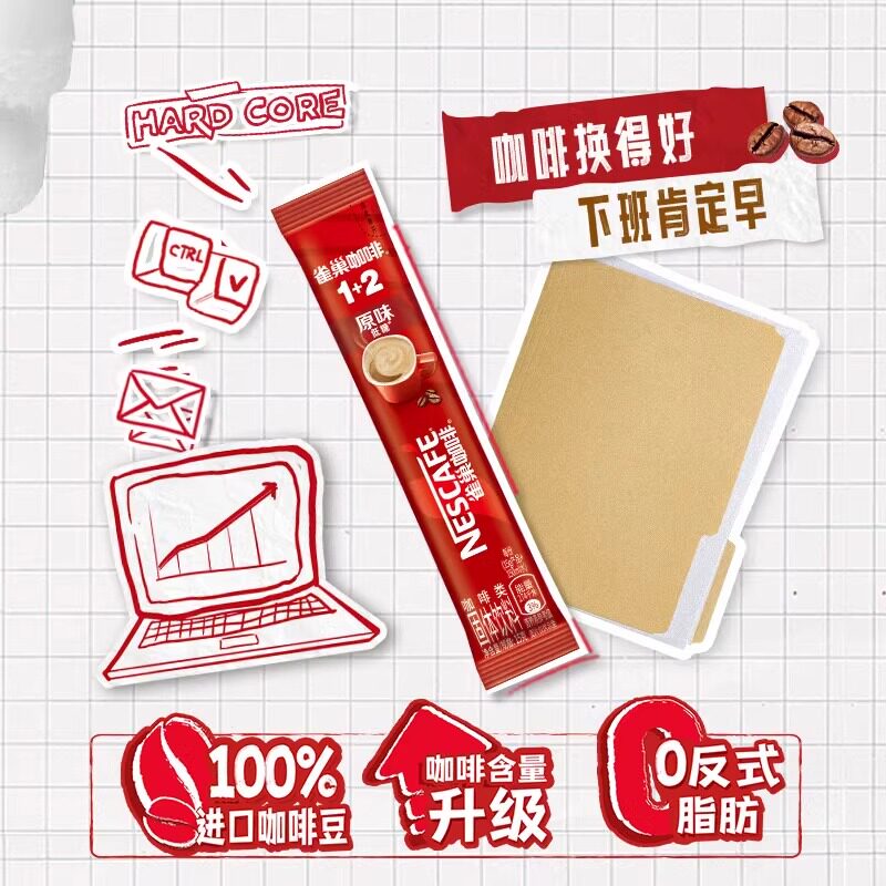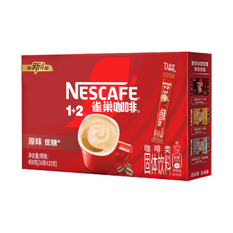 雀巢咖啡1+2原味三合一速溶咖啡粉低糖学生提神30条盒官方正品店