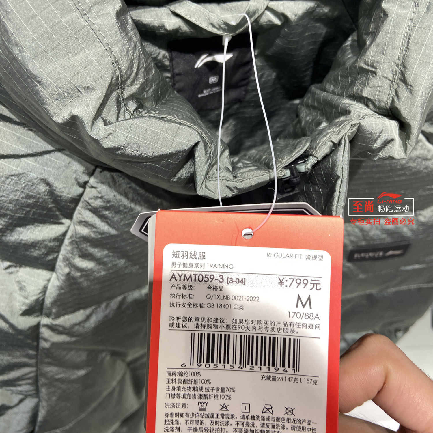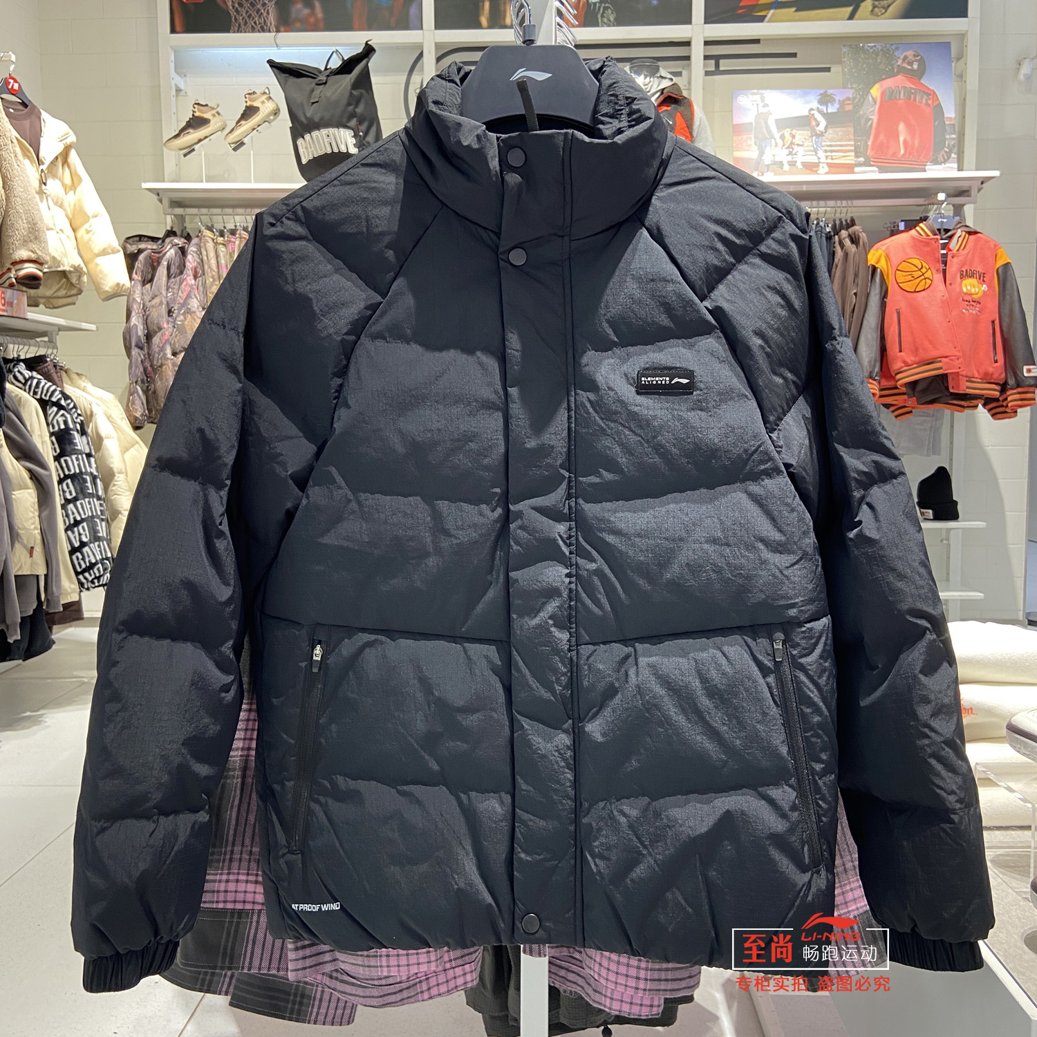 李宁羽绒服男士2024冬季健身鸭绒保暖休闲短款运动羽绒服AYMU075
