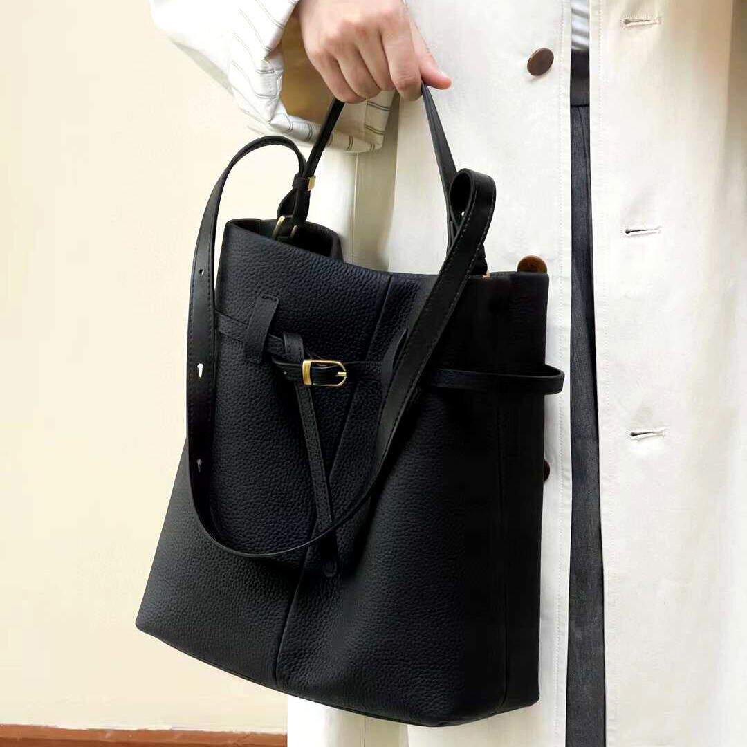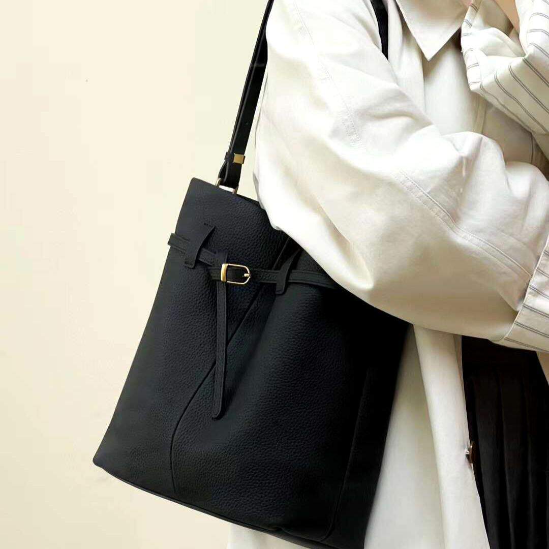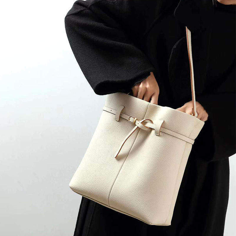 真皮水桶包女包大容量荔枝纹头层牛皮单肩包简约手提包百搭斜挎包