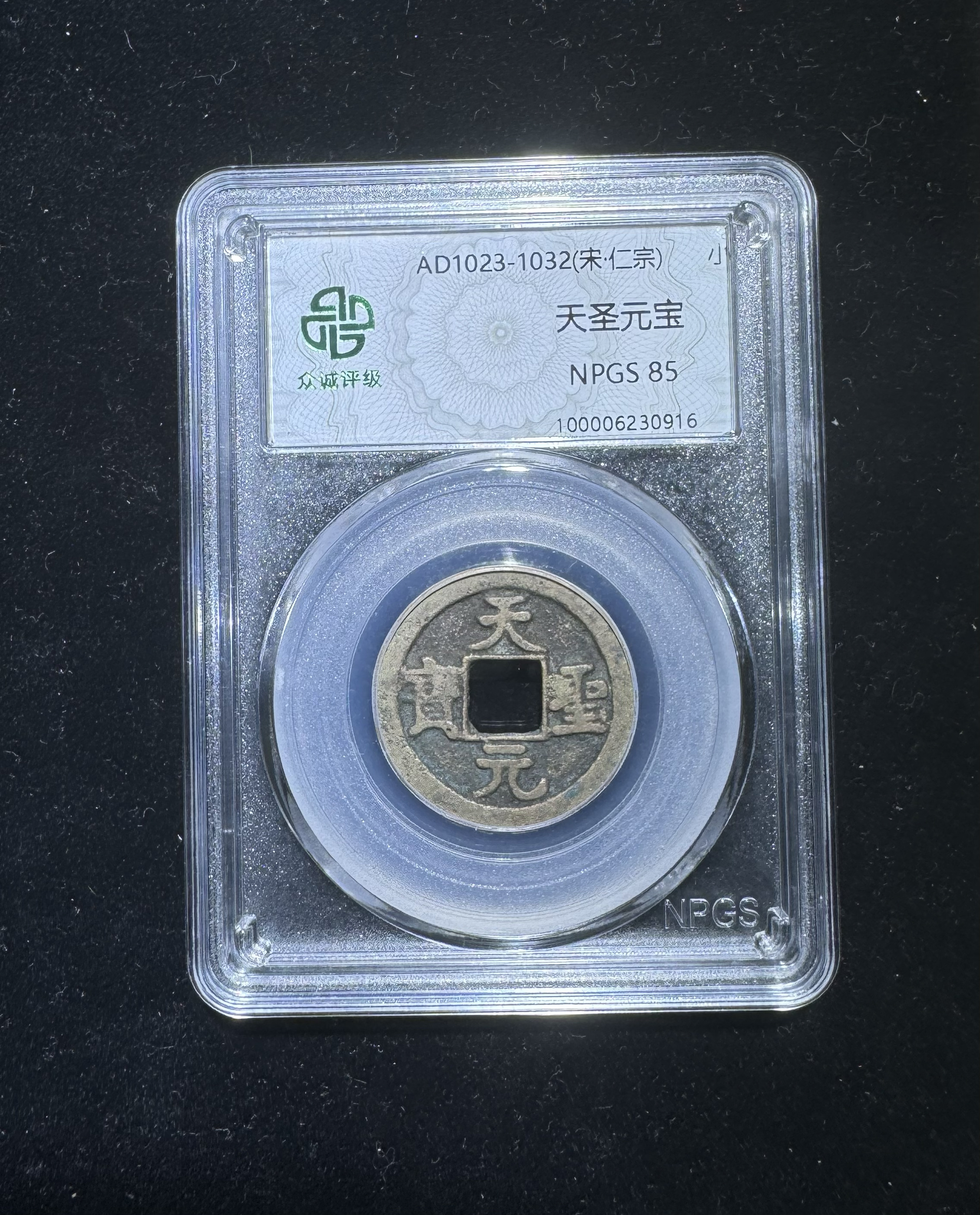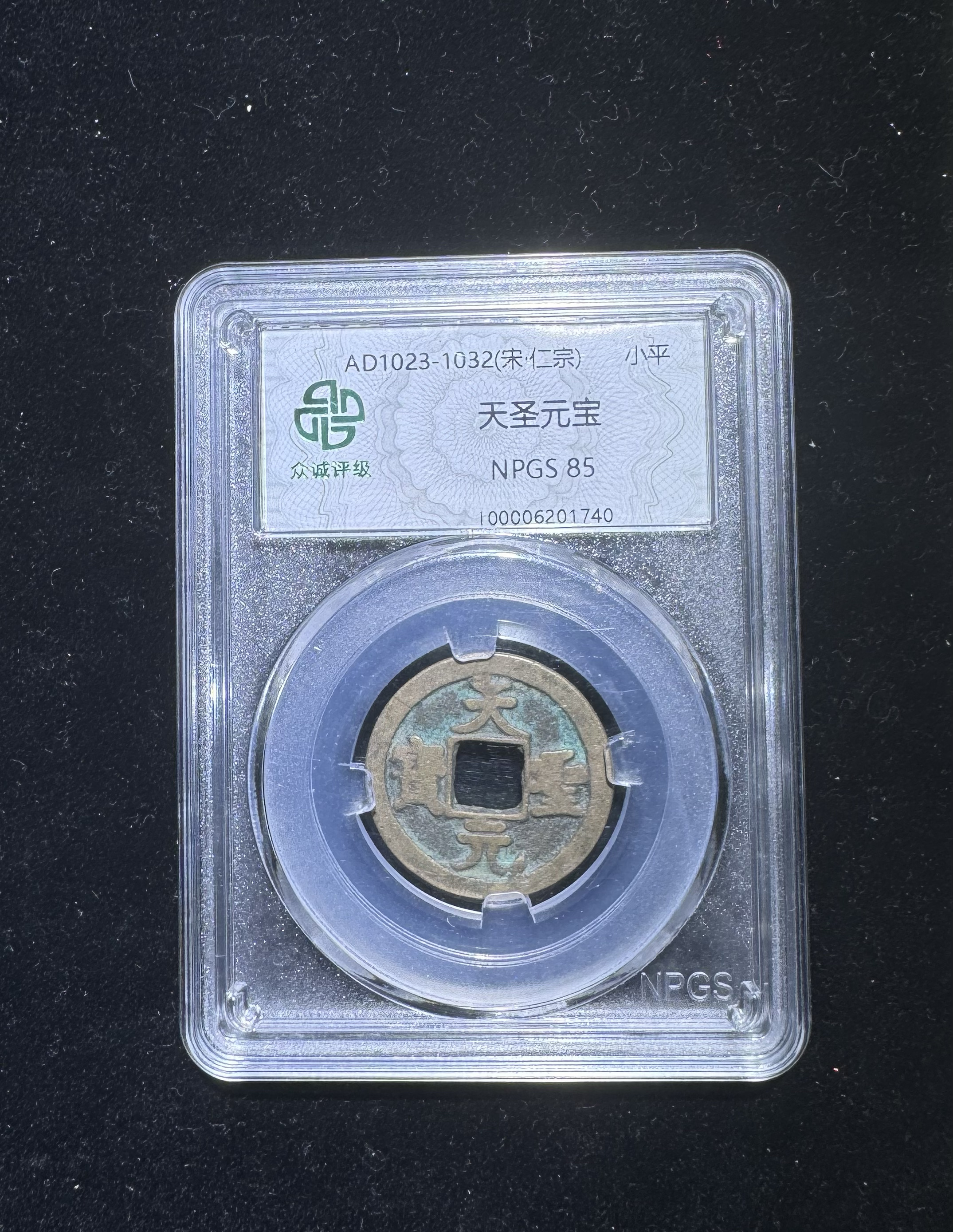 北宋钱币天圣通宝天天胜利带鉴定盒子币保真包老假一赔十