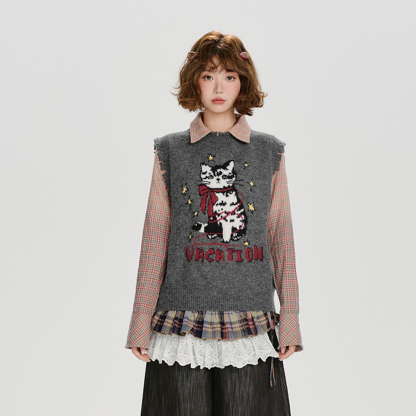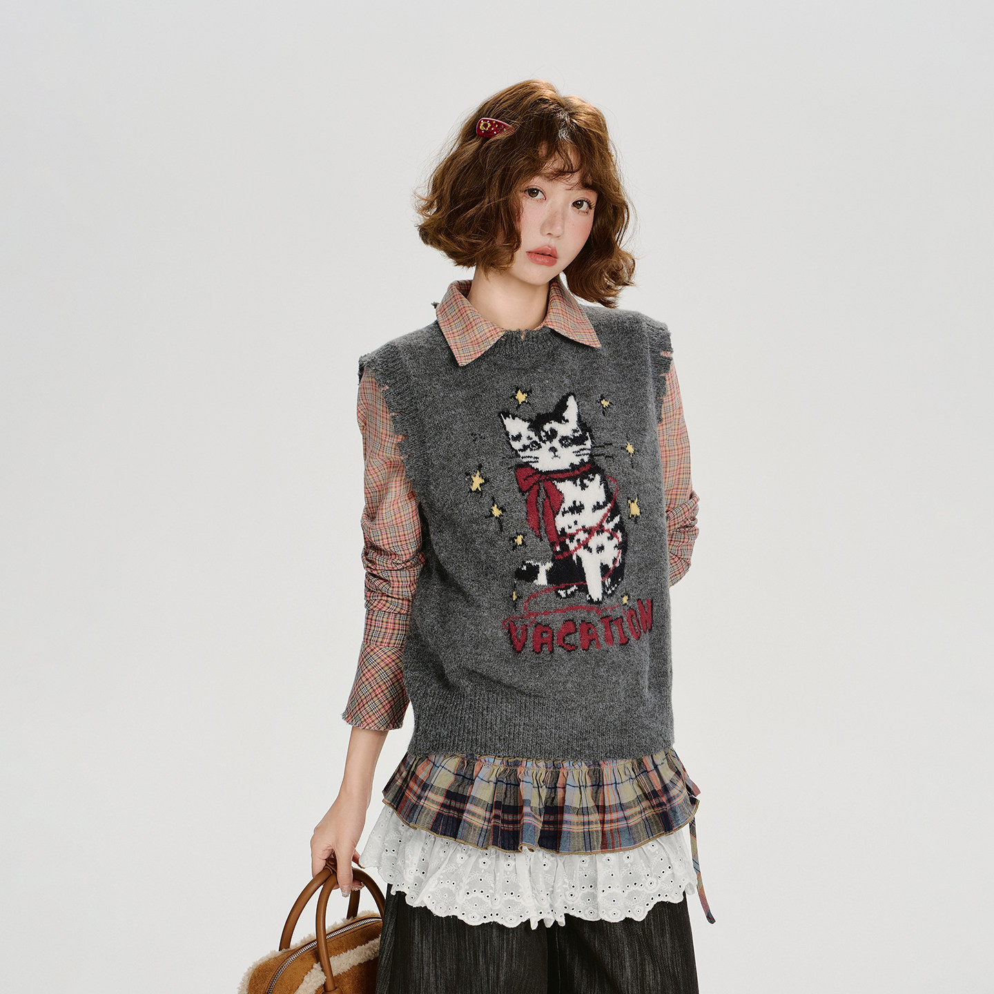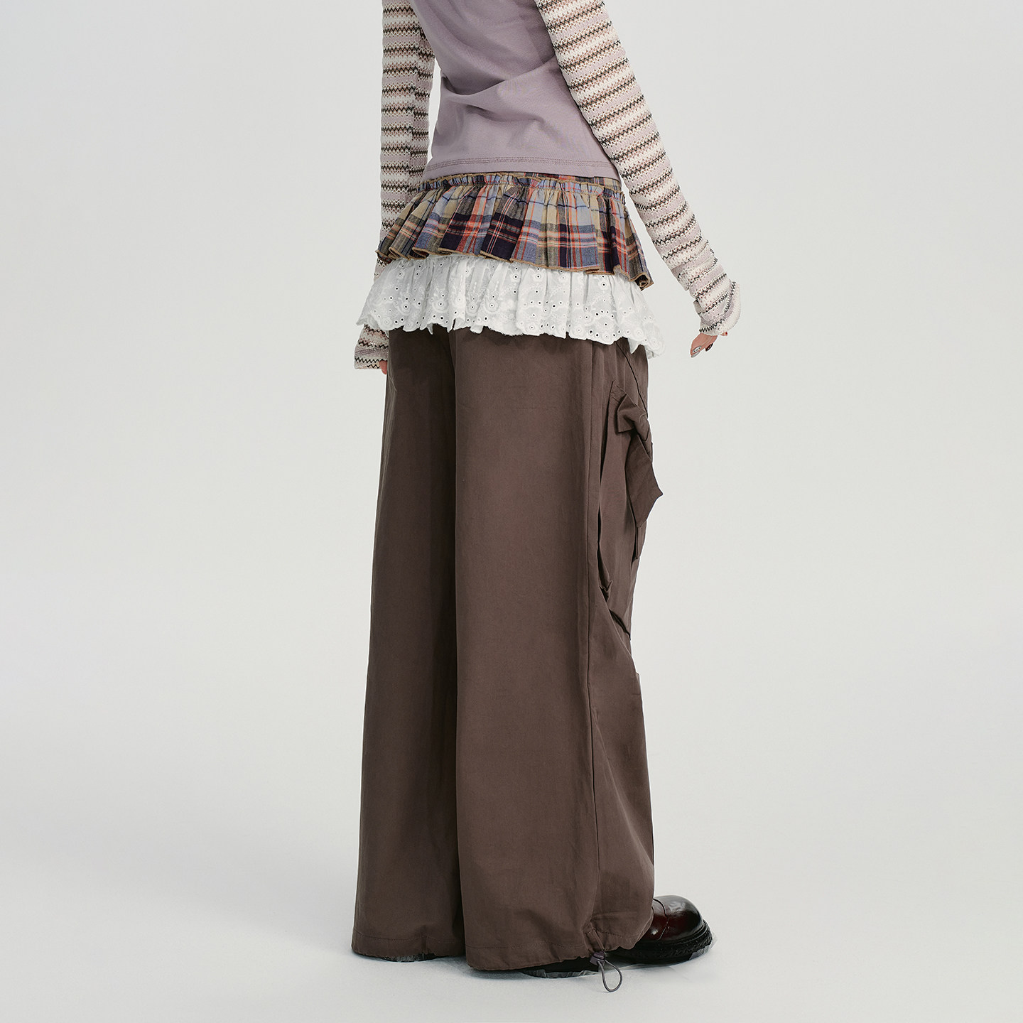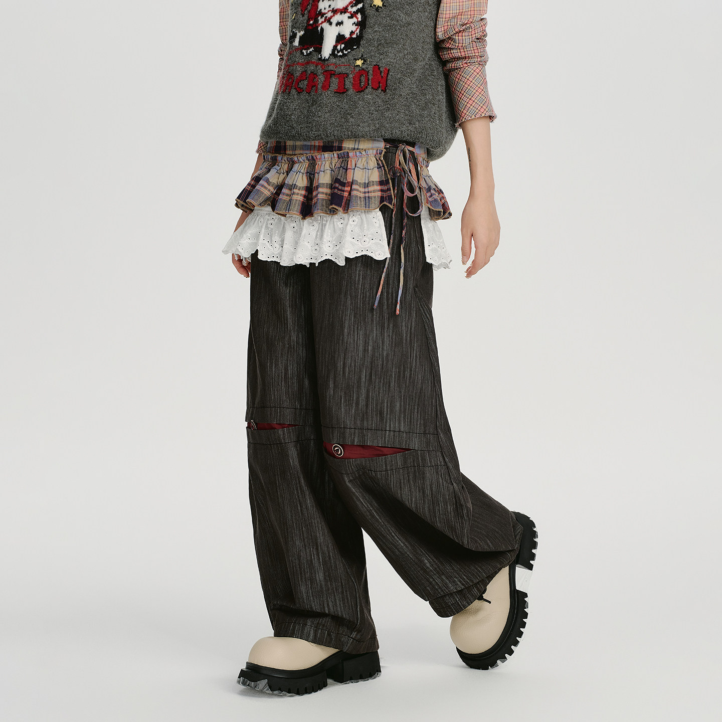 Girlyhalo美式复古格纹拼接蕾丝半身裙女一片式百搭叠穿屁帘
