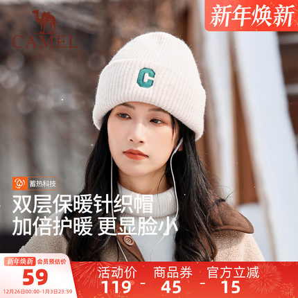 骆驼双层保暖针织帽2025年新款秋冬加厚冷帽显脸小百搭帽子毛线帽