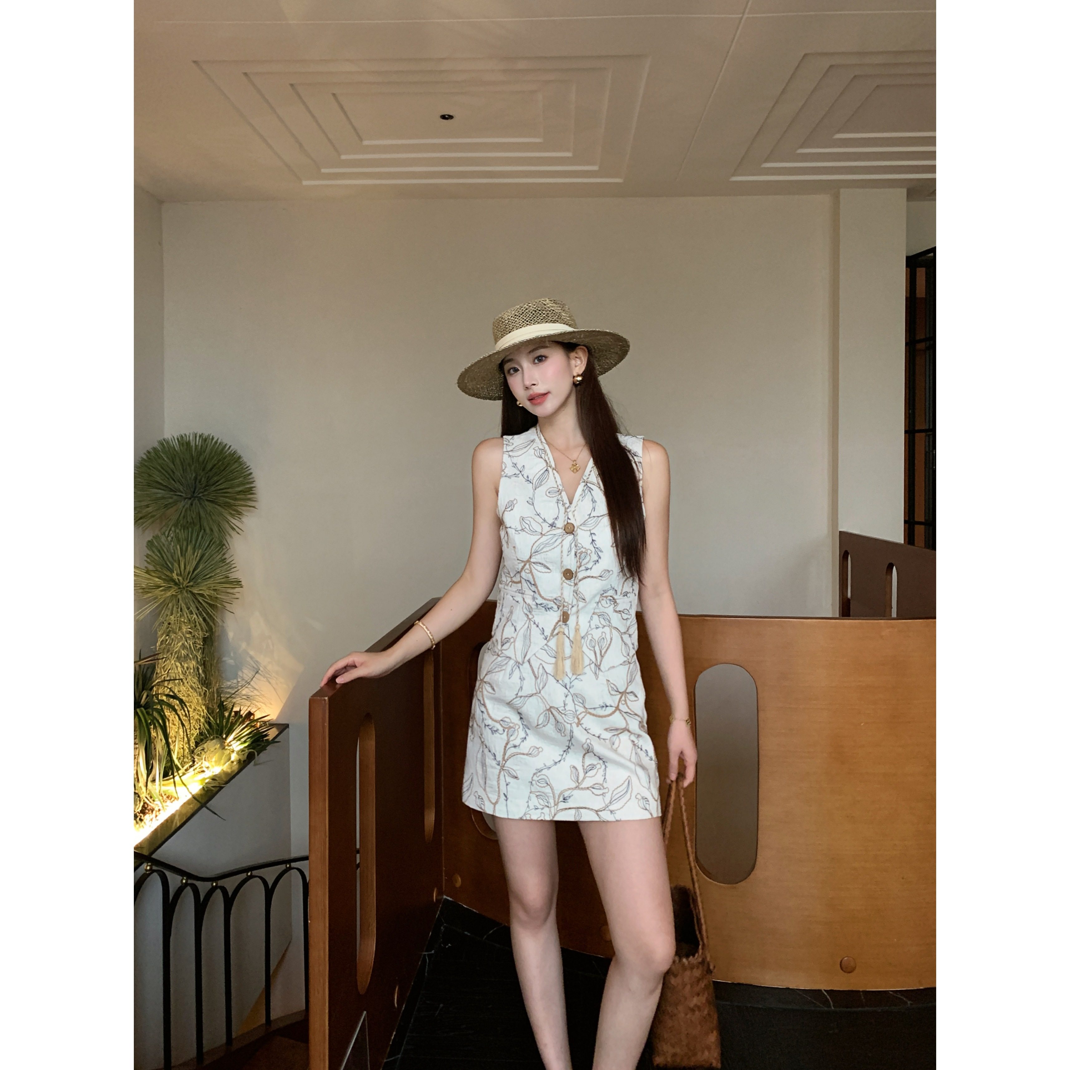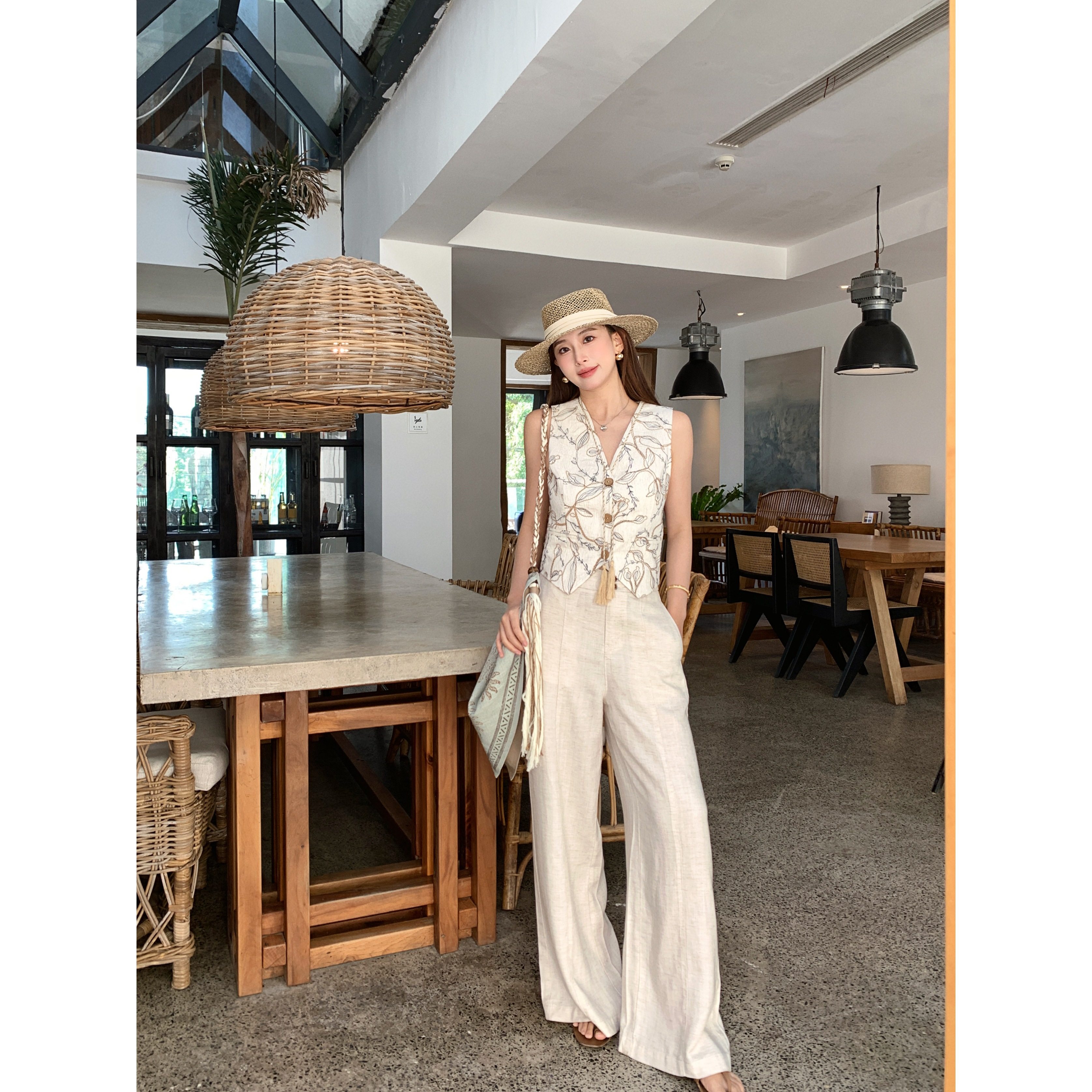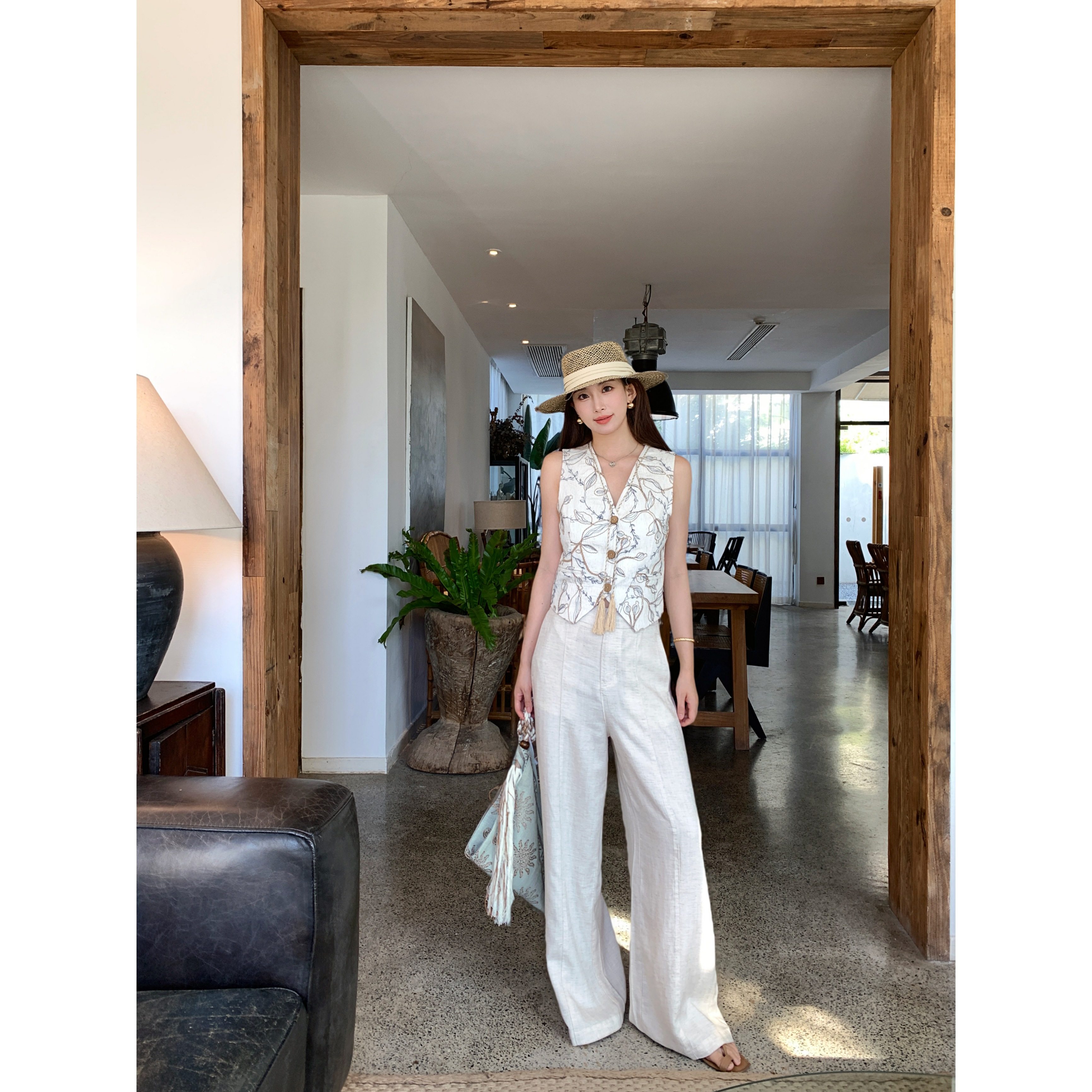 【现货】EAU DE MER 植物系重工刺绣亚麻马甲短裙套装