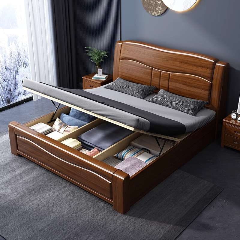 胡桃木色实木床1.8米双人床新中式实木床现代简约卧室单人大床