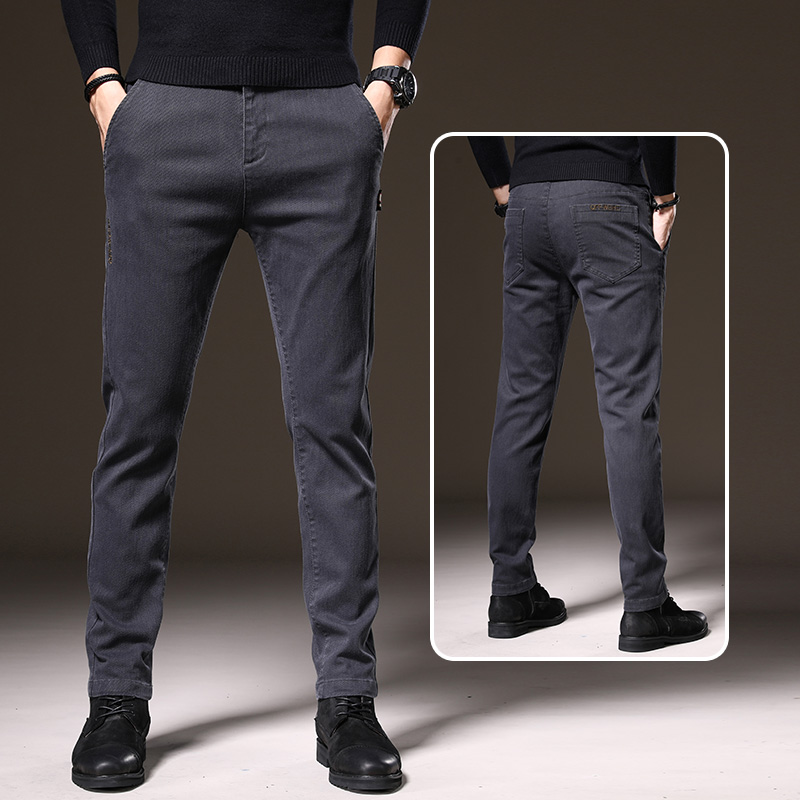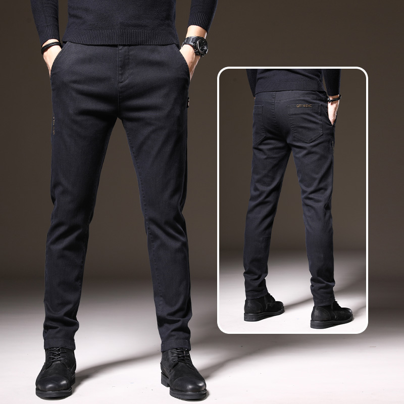 花花公子秋冬季牛仔裤男士修身韩版潮流直筒宽松加绒休闲长裤子男