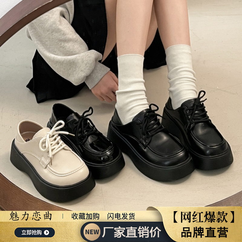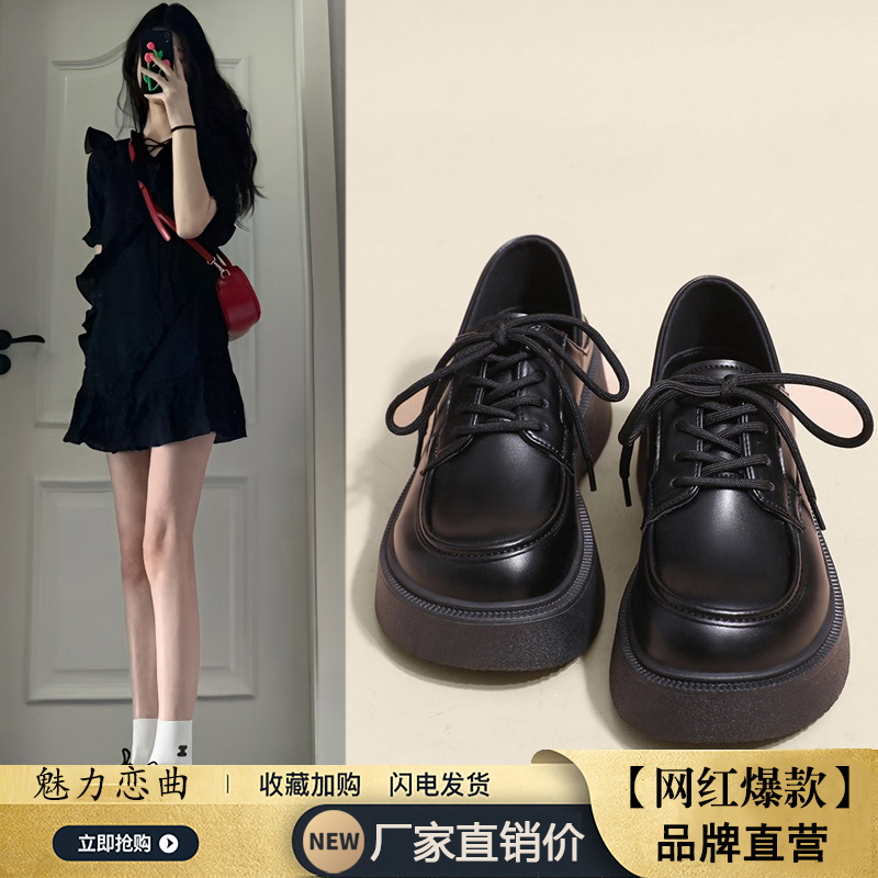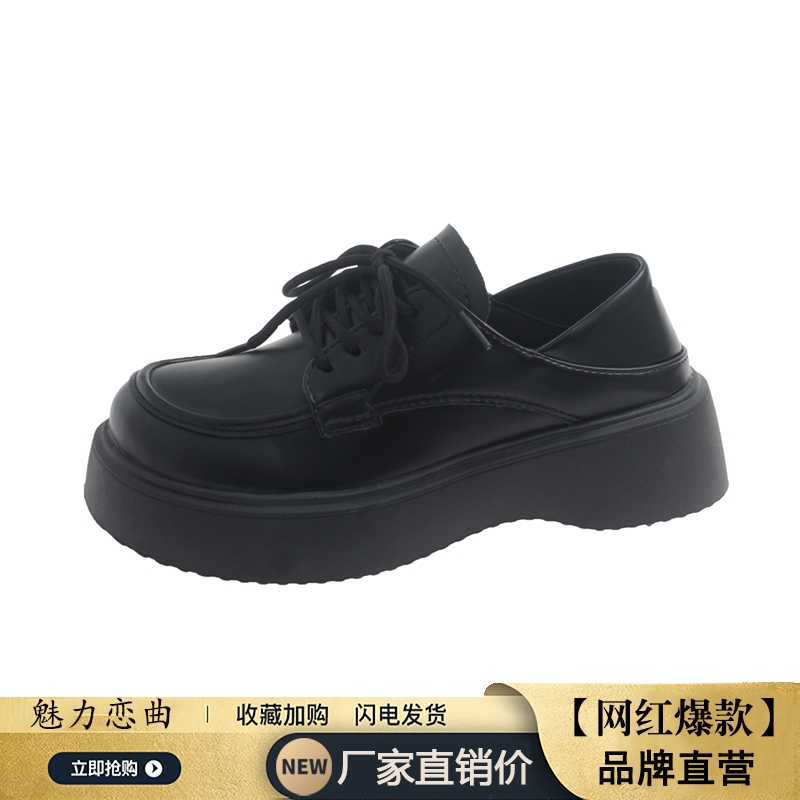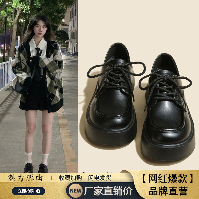 小皮鞋女春秋新款英伦风复古爆款黑色百搭松糕增高jk鞋厚底乐福鞋