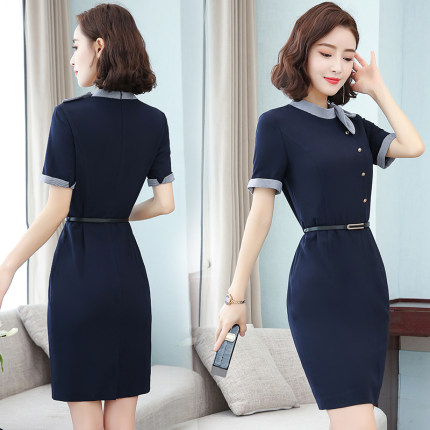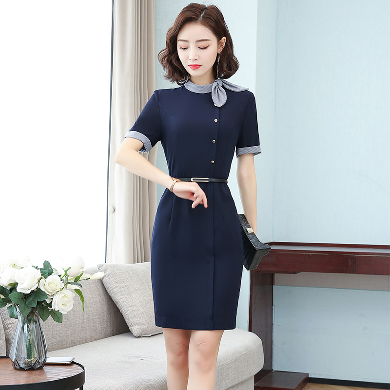 高端职业连衣裙子女气质时尚短袖酒店前台工装美容师售楼部工作服