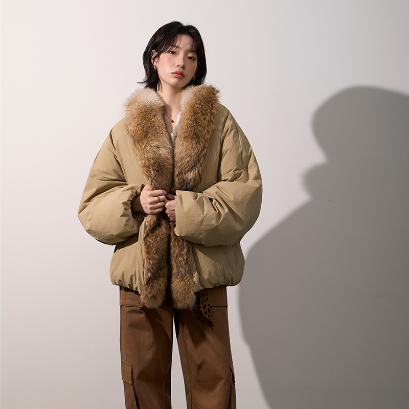 中长款羽绒服2025冬季新款女进口狼毛市场百搭鹅绒羽绒服宽松保暖