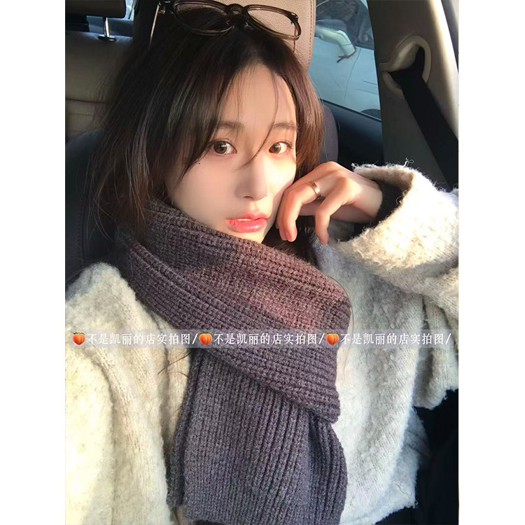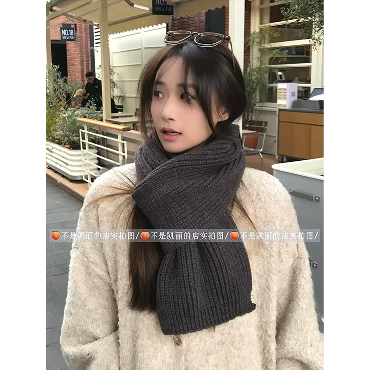 蘑糯糯同款纯色毛线围巾女秋冬温柔氛围感针织保暖软糯学生围脖男