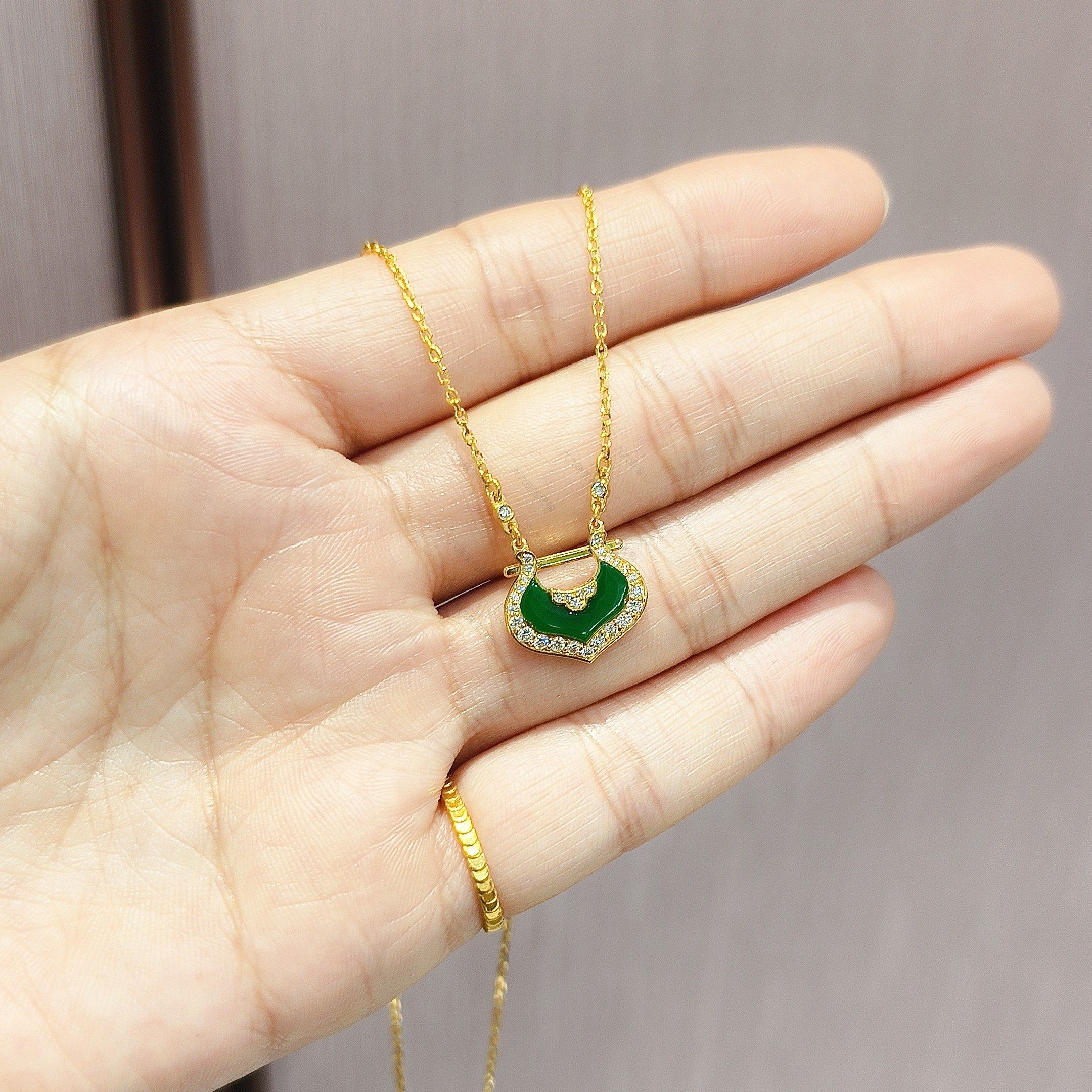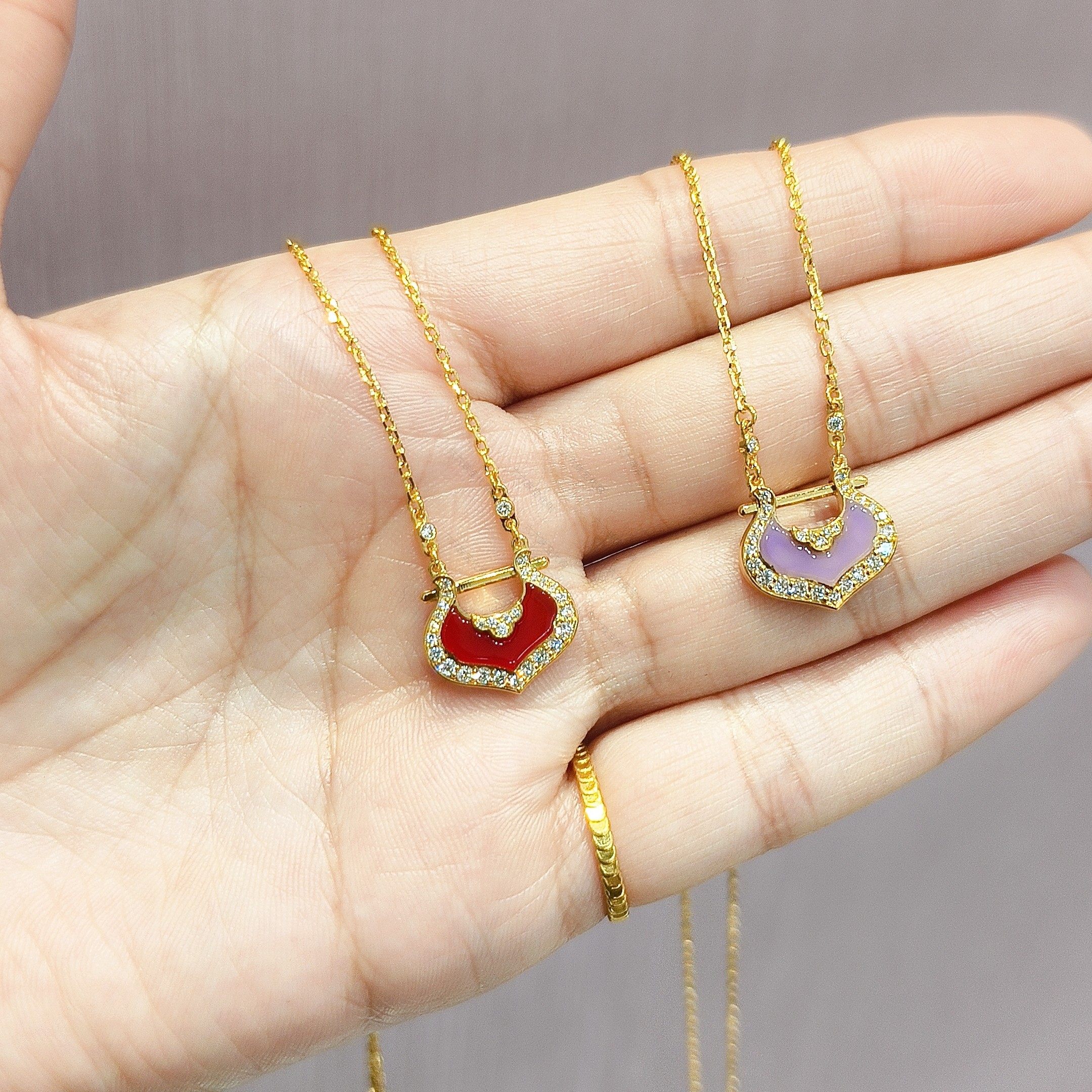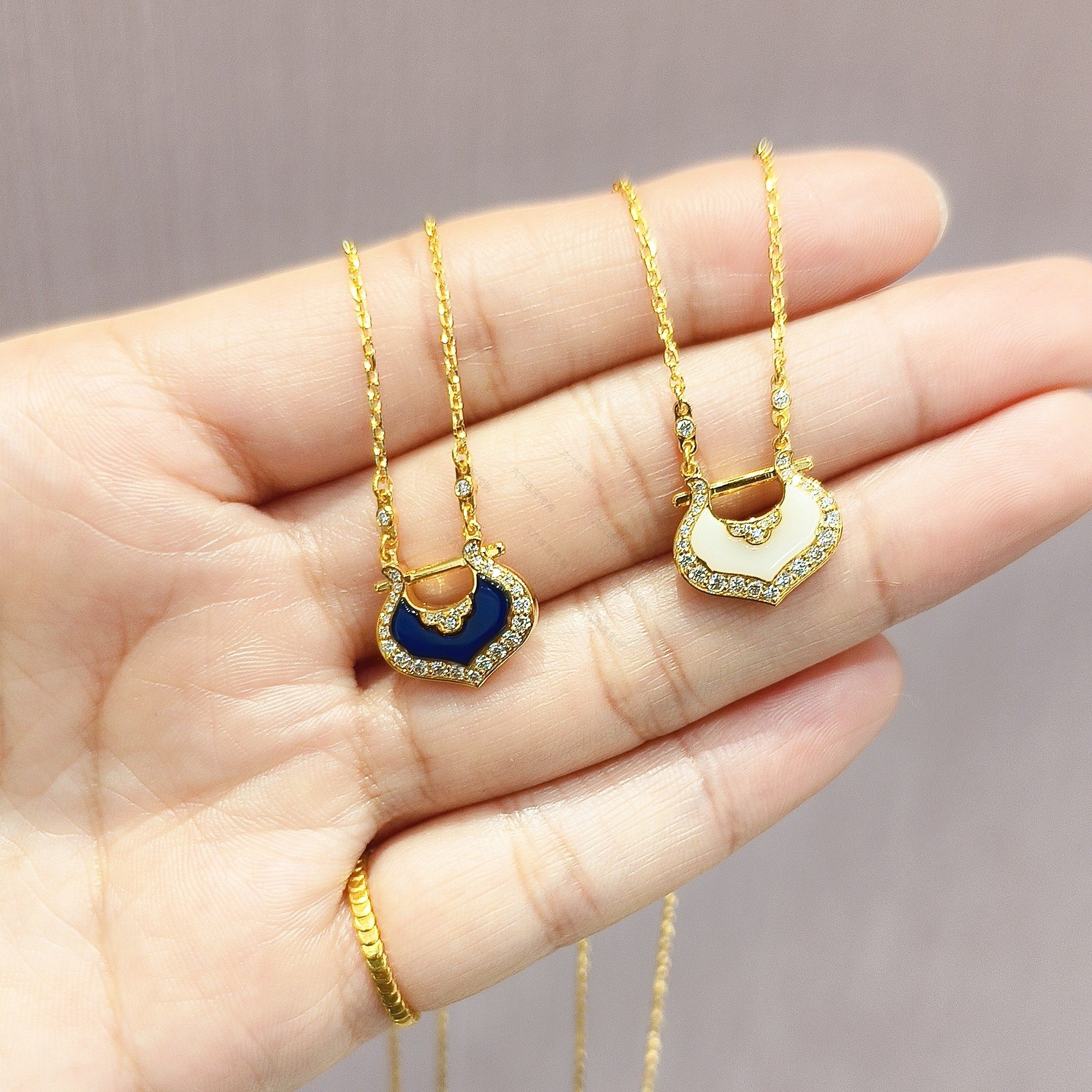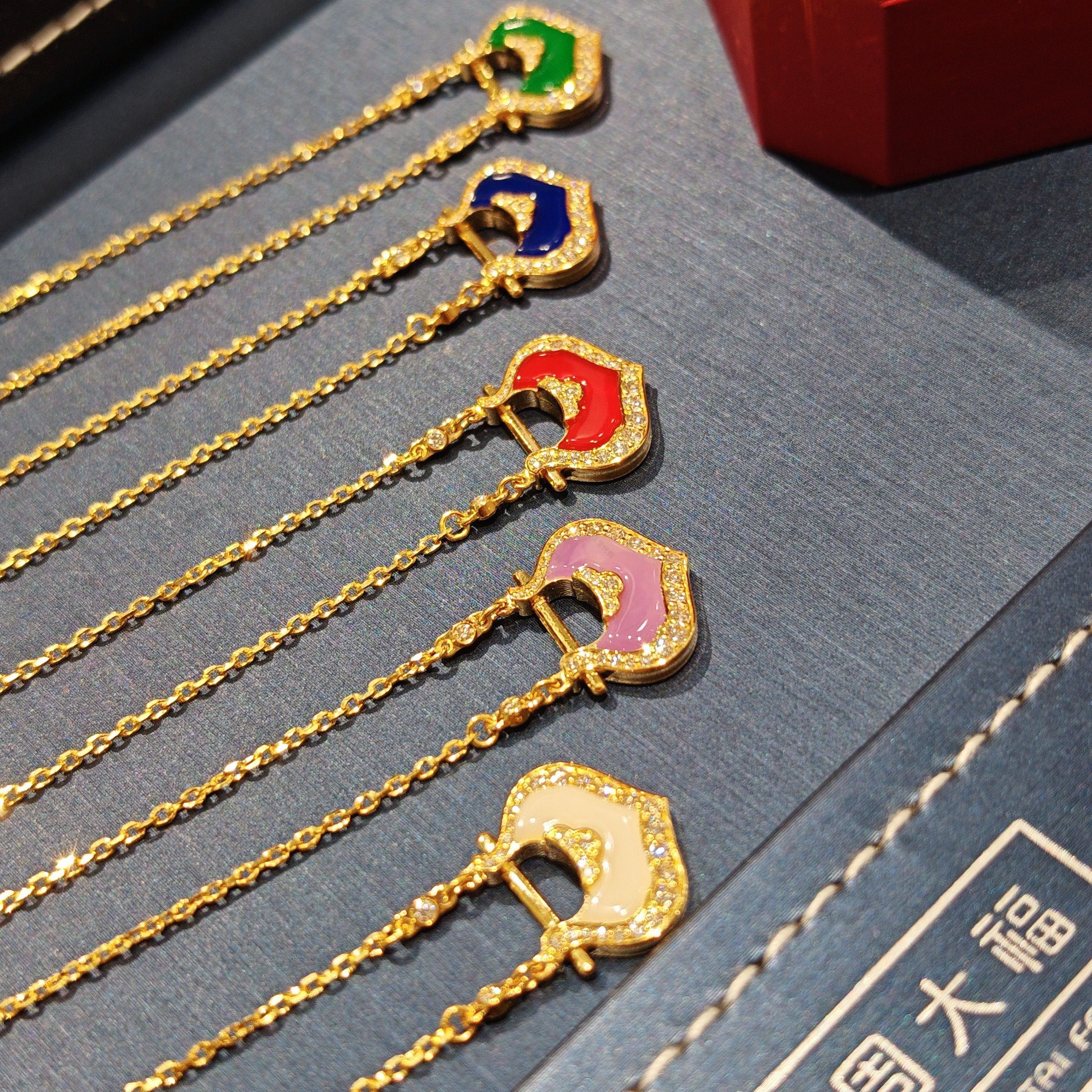 周大福代购 锁愿系列钻石鎏彩锁包足金黄金项链女 新款正品RU2051