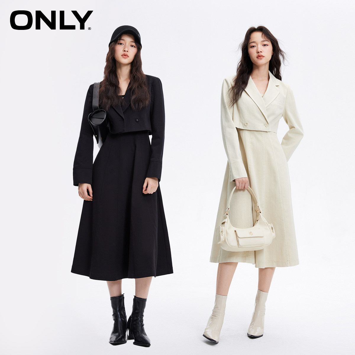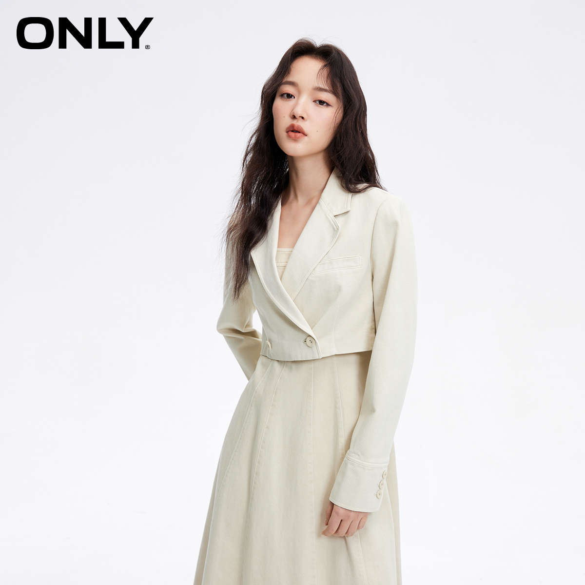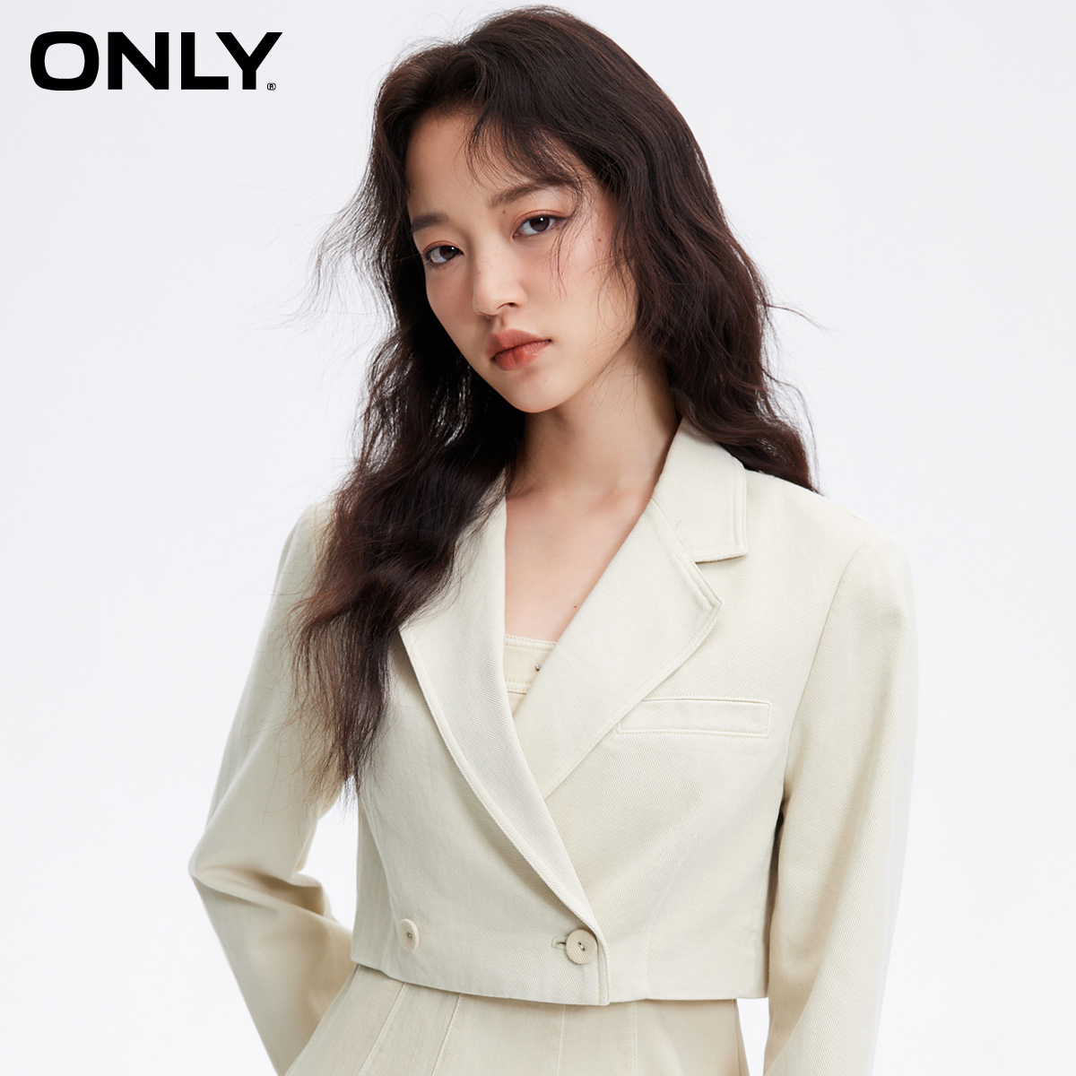 ONLY秋季时尚简约翻领直筒短款西装牛仔外套女|124155001