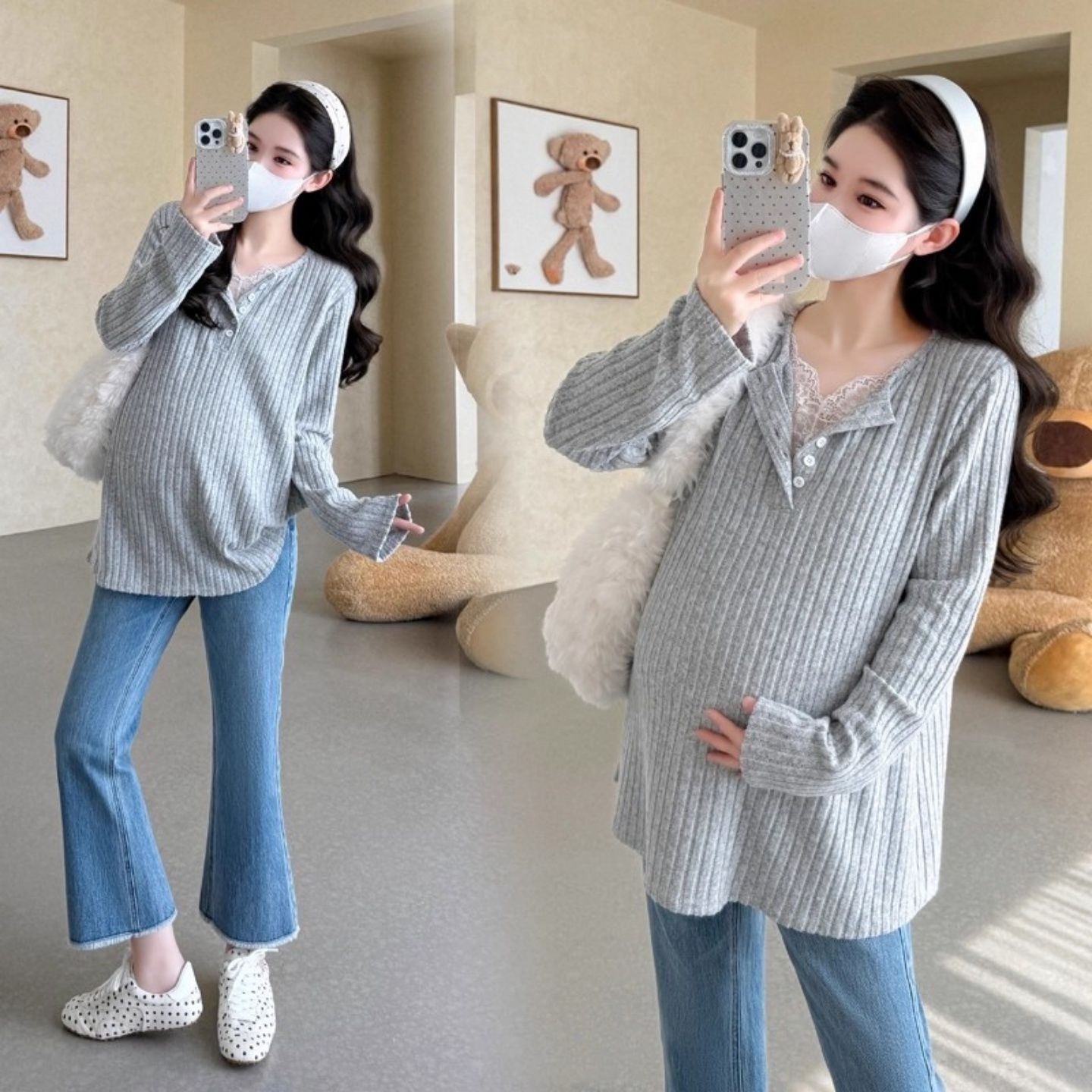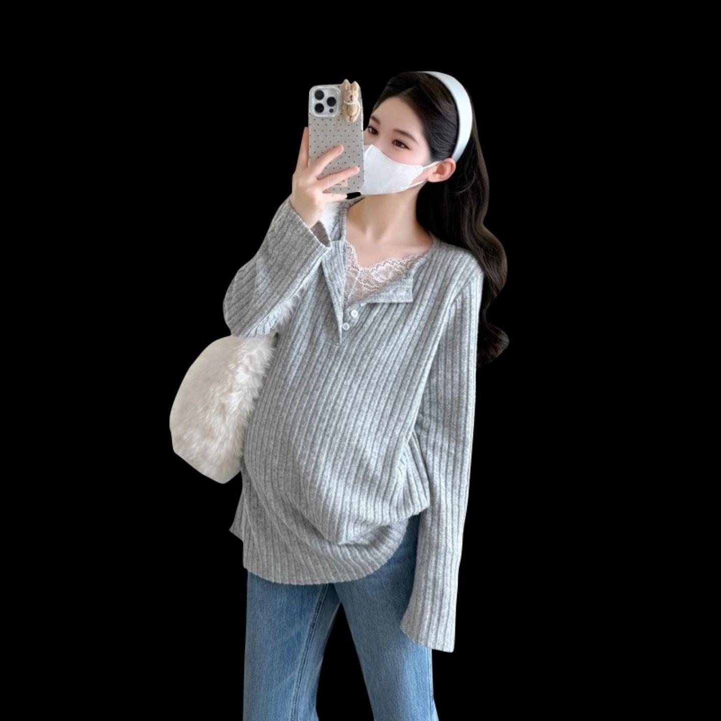 胖MM中长款纯色长袖V领T恤女300斤大码宽松遮肚子休闲简约上衣