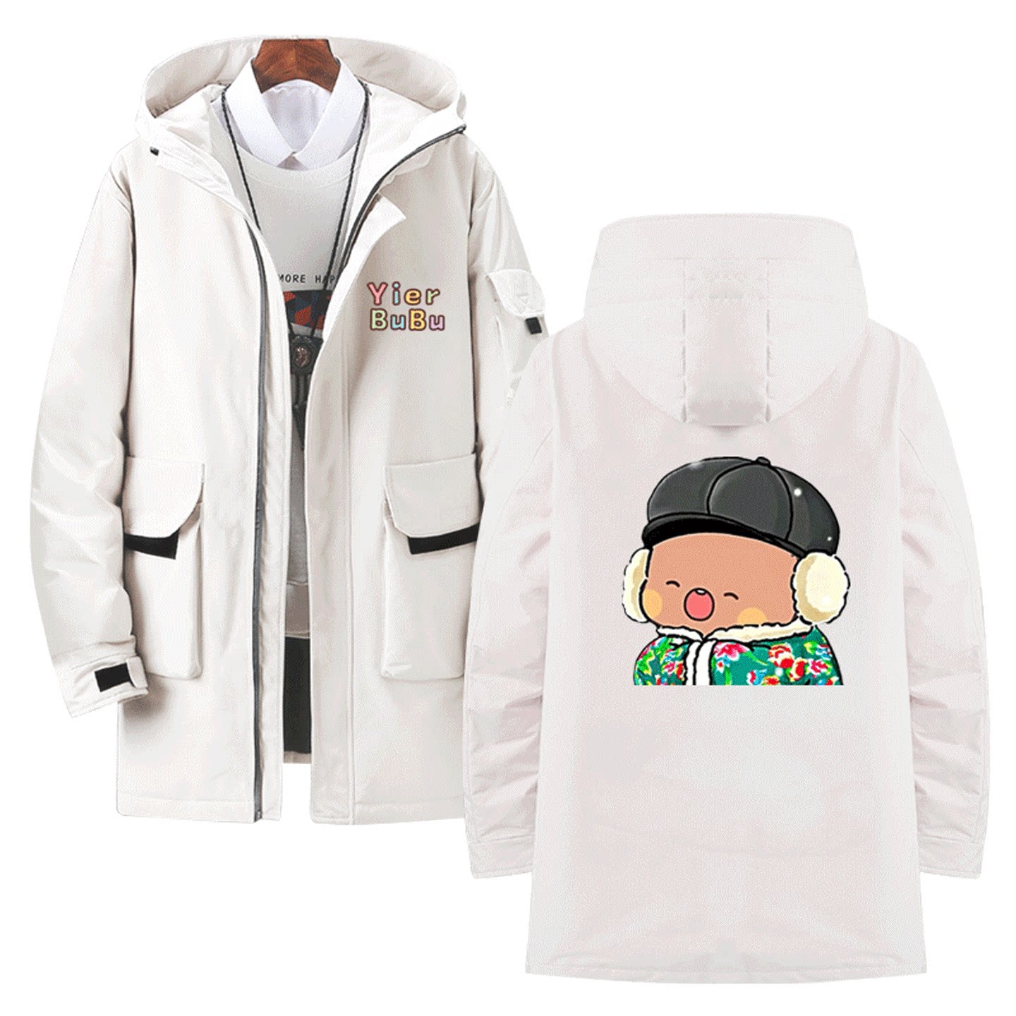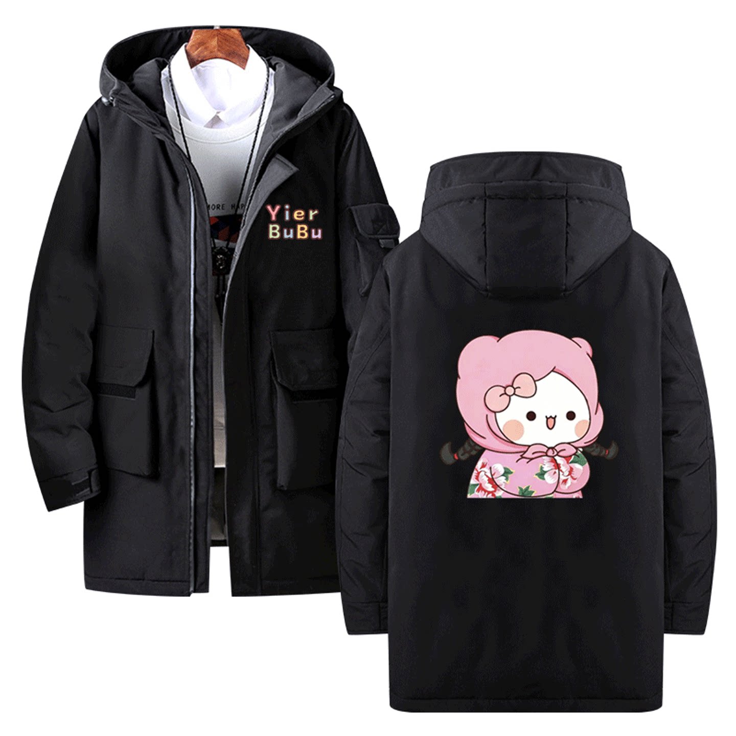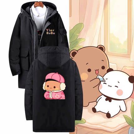 一二和布布动漫周边卡通印花男女情侣款秋冬季可定制中长款羽绒服