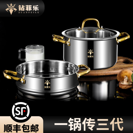 钻菲乐316蒸锅家用商用多层蒸煮炖小型家用汤锅蒸锅一体电磁炉