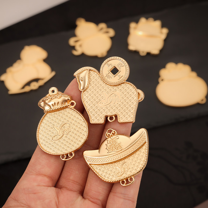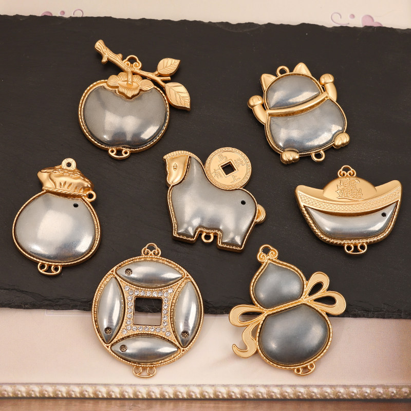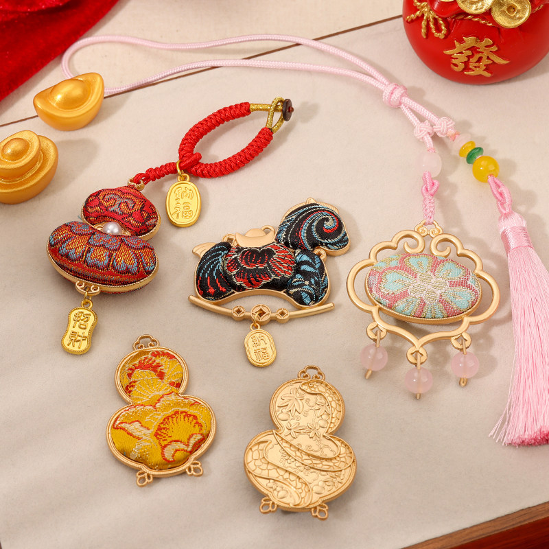 宋锦diy双面小马吊坠马上发财蓝染绣花包布底托挂件复古配饰马年