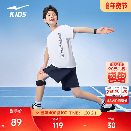 鸿星尔克童装男童短袖短裤套装儿童冬季百搭运动服中大童两件套
